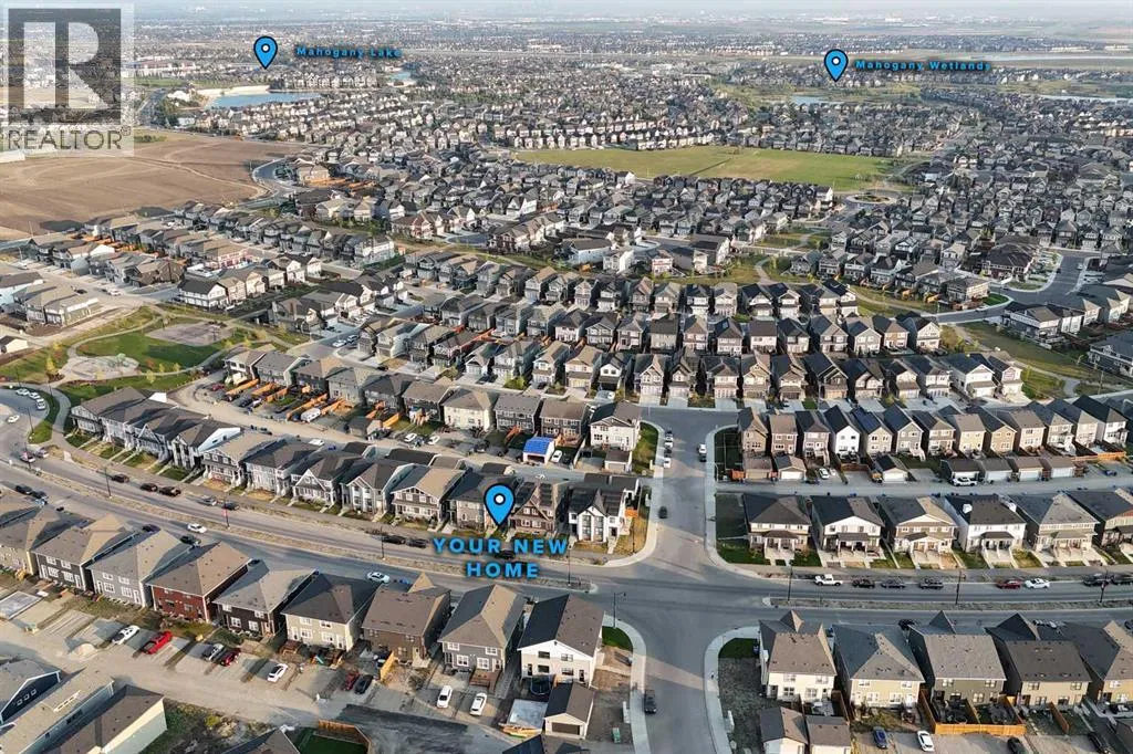 Welcome to 1075 Mahogany Boulevard SE, a pristine semi-detached home with nearly 1,700 sq. ft. of above-grade living space and a spacious basement offering huge future potential. Located in the sought-after lake community of Mahogany, this property blends contemporary design with family-friendly functionality. The main floor features a bright, OPEN-CONCEPT LAYOUT where expansive windows fill the living, dining, and kitchen