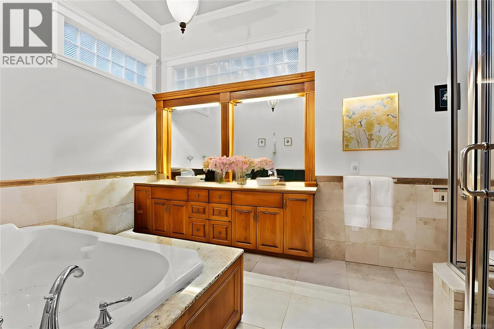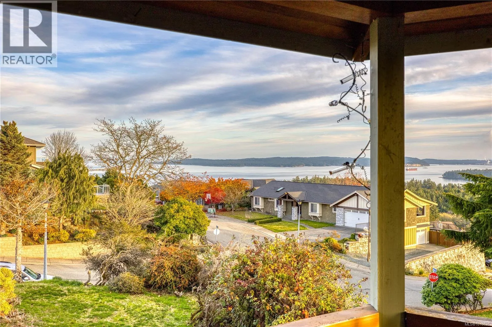+"PublicRemarks": "Welcome to 3688 Glen Oak Drive, where ocean, mountain, and city views come together in one beautiful home, with a carriage house on site! The entrance features a solid oak front door with side windows and a vaulted formal living room with a stunning hanging light. The main level offers two family rooms — each with its own fireplace — plus a bright dining room and kitchen with stone countertops, undermount sink, white cabinets, tile backsplash, stainless steel appliances, and a connected eating nook with an ocean view. Off the kitchen is an Ocean and City view patio with a retractable awning, overlooking Mount Benson, the City of Nanaimo, and Gabriola/Newcastle Island. A second patio off the rear family room offers a peaceful, private outlook. A rare feature: the primary bedroom is on the main floor, complete with a walk-in closet and an ensuite with a tub. Also on the main level is a guest powder room and a full laundry room. Upstairs are three bedrooms and two full bathrooms (both with showers). A flexible layout, incredible views on two Juliet balconies, and main-floor living make this home a standout. All measurements are approximate. (id:62650)"