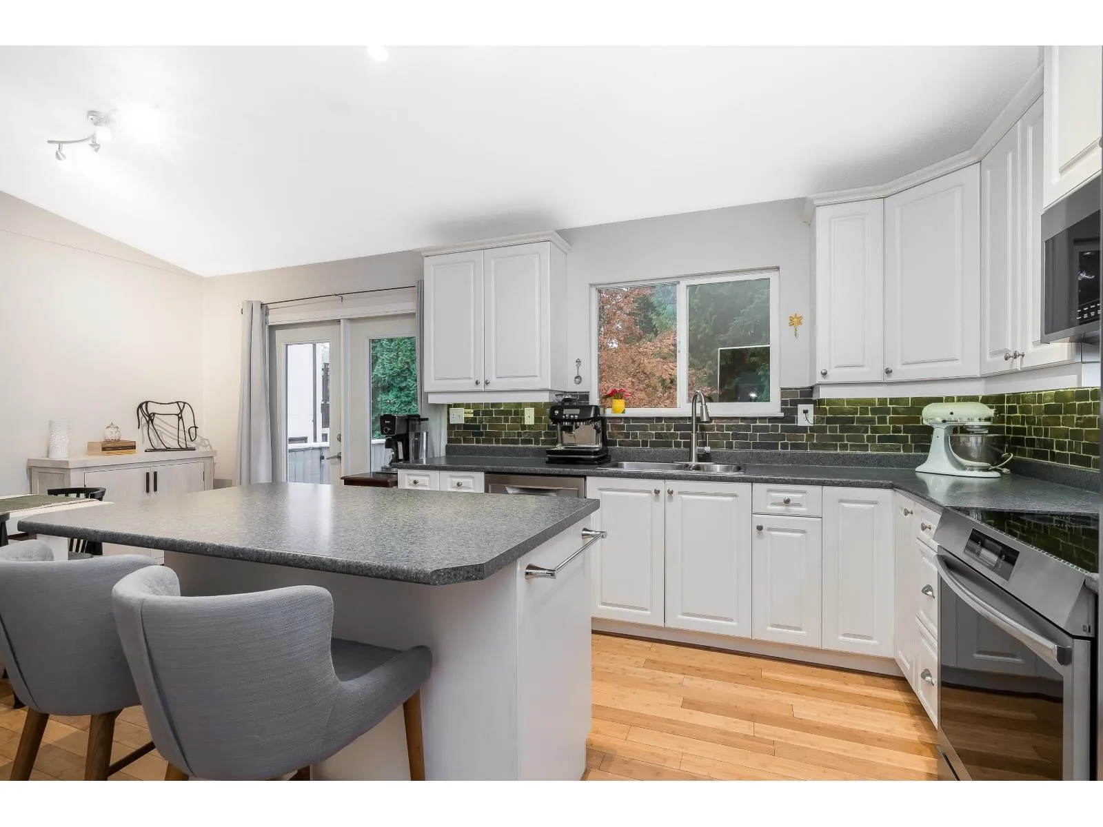 +"PublicRemarks": "Welcome to sought-after Brookswood! This beautifully maintained 5-bedroom home was fully renovated in 2006 with vinyl windows, electrical upgrades, a high-efficient furnace, and a newer hot water heater (2023). Enjoy vaulted ceilings, bamboo flooring, and a bright kitchen with white cabinets, large work island, and newer stainless appliances including an induction range. Features include two cozy valor fireplaces and a new 12'x15' sundeck overlooking a flat, south-facing 9,877 sq.ft. yard with RV parking. Close to schools, parks, and amenities. This one has it all! (id:62650)"