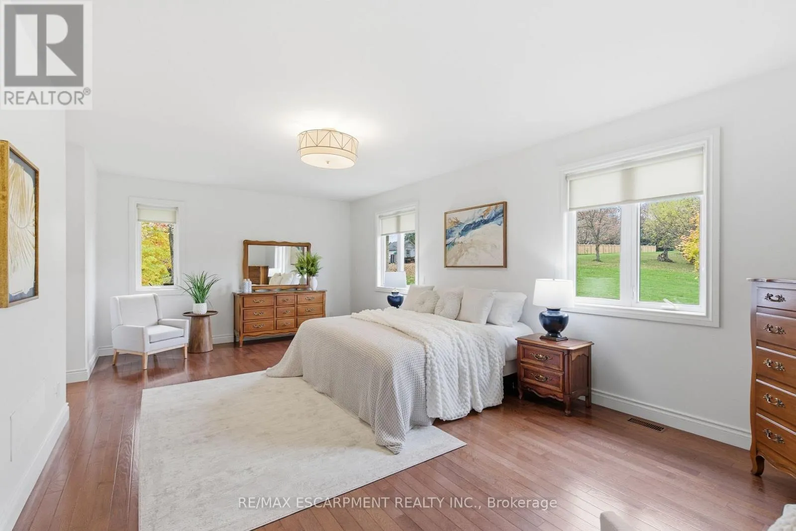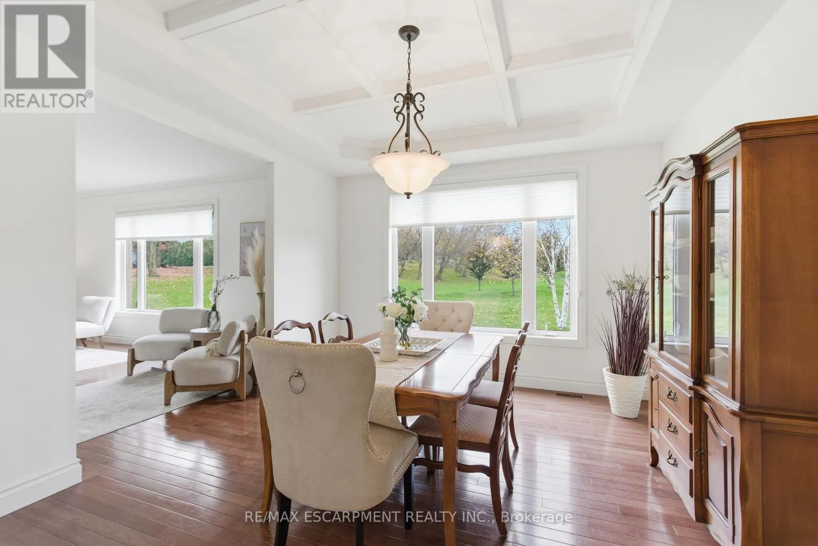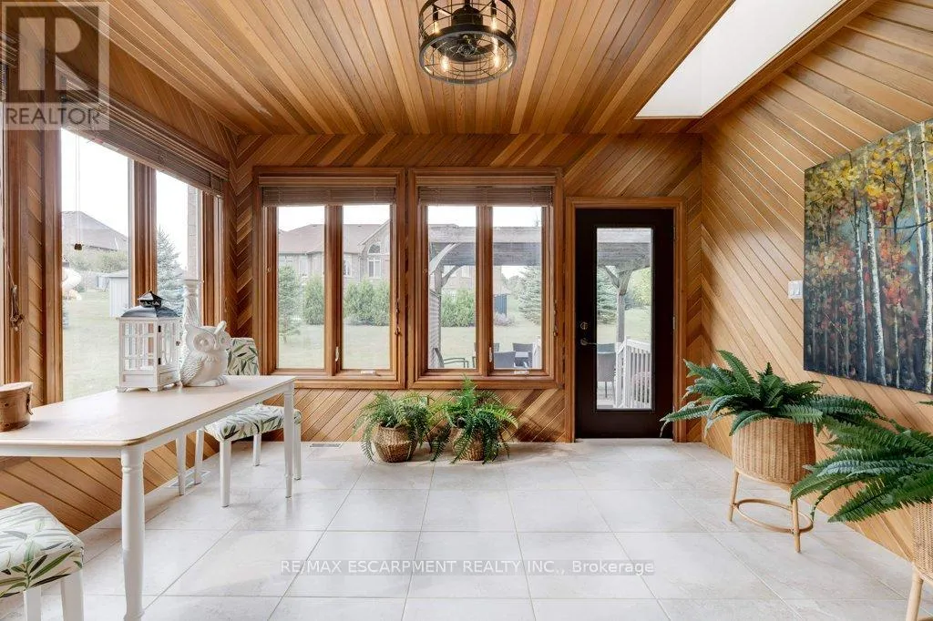 +"PublicRemarks": "Welcome to the epitome of refined, one floor living in one of the region's most prestigious estate neighbourhoods - just minutes from the natural beauty of Spencer Gorge. From the moment you step into the grand foyer with its walk-in closet, the home reveals a level of scale and sophistication that is simply rare. Crafted for exceptional main-floor living, the principal rooms flow effortlessly: an expansive living room, elegant coffered dining room, sunlit four-season room with walk-out to the patio, and a warm, inviting family room anchored by a gas fireplace. The oversized kitchen offers commanding views of the expansive grounds and the space to create at any level of culinary ambition. The main-floor primary suite feels like a private luxury retreat, featuring his-and-her walk-in closets and two spa-calibre ensuites with heated floors. A second main-floor bedroom with its own ensuite provides perfect flexibility for children, guests, or elegant multi-generational living. The upper level offers two generous bedrooms, a bonus room, a bright four-piece bath with solar tube lighting, and a walk-in attic for storage. A commercial-grade washer/dryer adds practical convenience. Car enthusiasts will appreciate the three-car garage with exposed aggregate driveway, heated workshop, and wheelchair lift for added accessibility. Outdoors, 1.4 acres of landscaped privacy create a serene backdrop for your outdoor endeavours. The lower level delivers over 3,000 square feet ready for your theatre, fitness studio, or wine cellar (or all of the above). Geothermal heating/cooling, dual water heaters, reverse osmosis, and 400-amp service ensure this home is as future-ready as it is luxurious. RSA. (id:62650)"