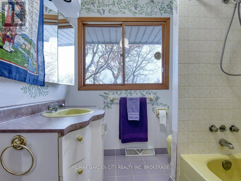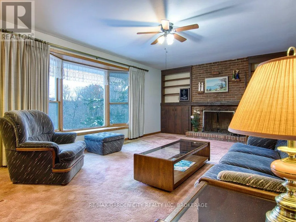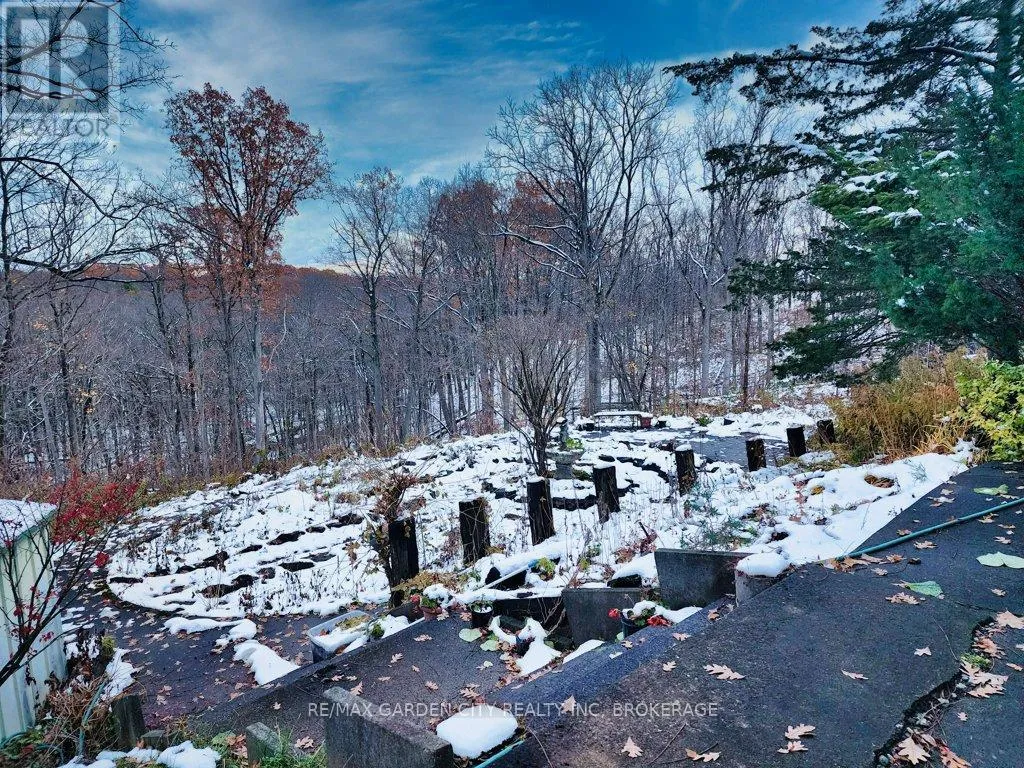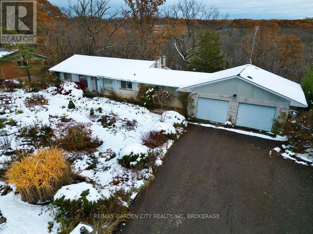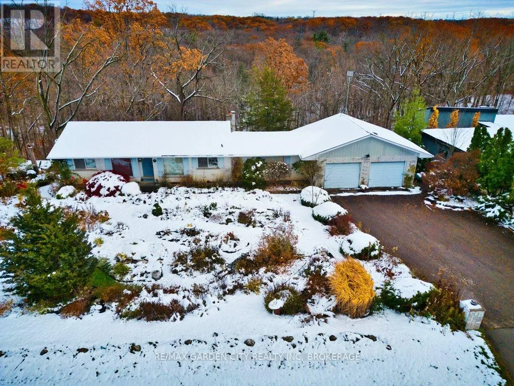 +"PublicRemarks": "A one family brick bungalow built in 1967 with a double attached garage and double paved, private drive. In the country, just outside the city limits on a 110' x 290' ravine lot backing onto Shorthills. Insulated workshop off the garage. Open kitchen and dining area. Living room with unbelievable views from a large bay window, wood fireplace. 4 piece bathroom and 2 bedrooms, master with patio doors to a balcony deck that once was. Full basement with walkout has 2 bedrooms and a 2 piece bathroom. Rec room with brick hearth for a wood stove. Laundry room, 100 amp breakers, natural gas, original furnace. The only upgrades have been new shingles 3 years ago, new central air 2 years ago, kitchen was renovated at some time, the rest is original, in need of repair. Close to all amenities and QEW with incredible views of the escarpment and vineyards. Note - concrete blocks have cracked and moved at the South side of the house. (id:62650)"