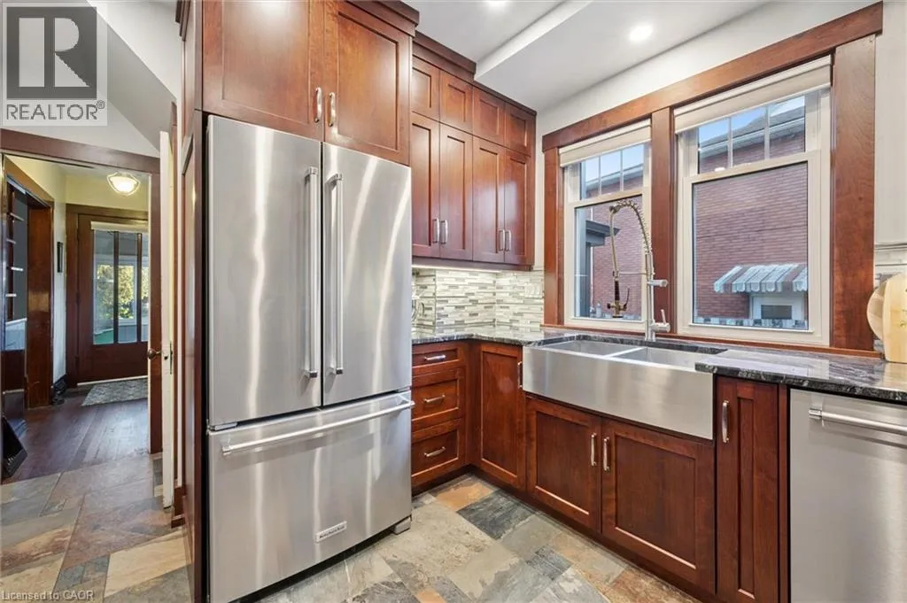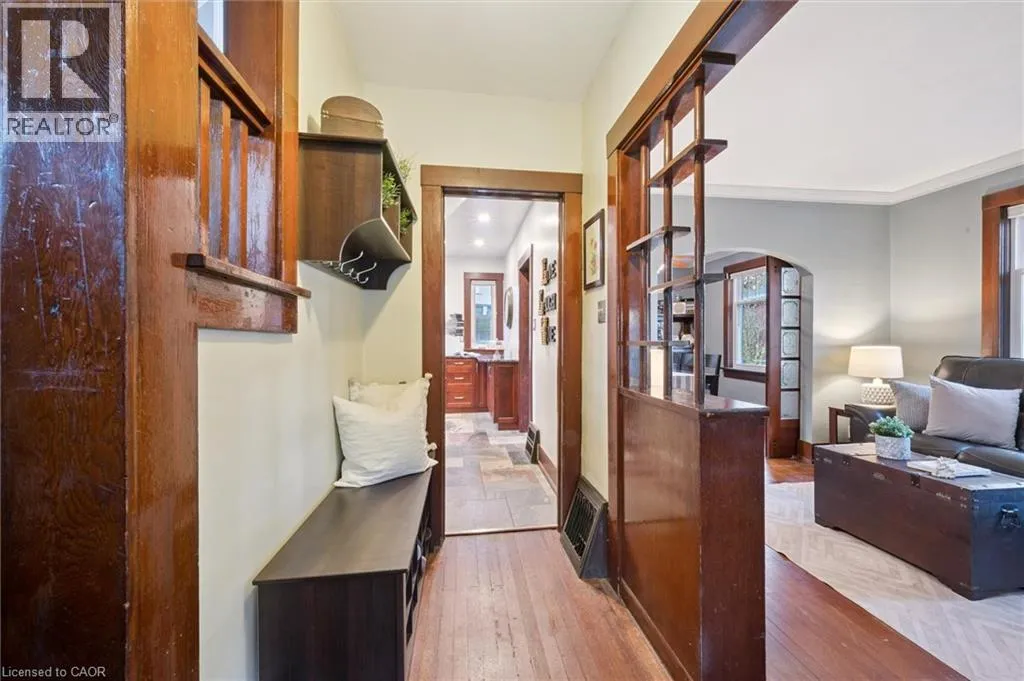 Timeless Charm Meets Modern Comfort in Kitchener. Step into this beautifully updated 3-bedroom century home, where charm and character meet updated modern convenience. Enter from the bright and sunny sunroom at the front of the home into the main floor foyer featuring original natural woodwork. A tastefully renovated kitchen (2019) features custom cabinets, granite countertops and stainless steel appliances, separate