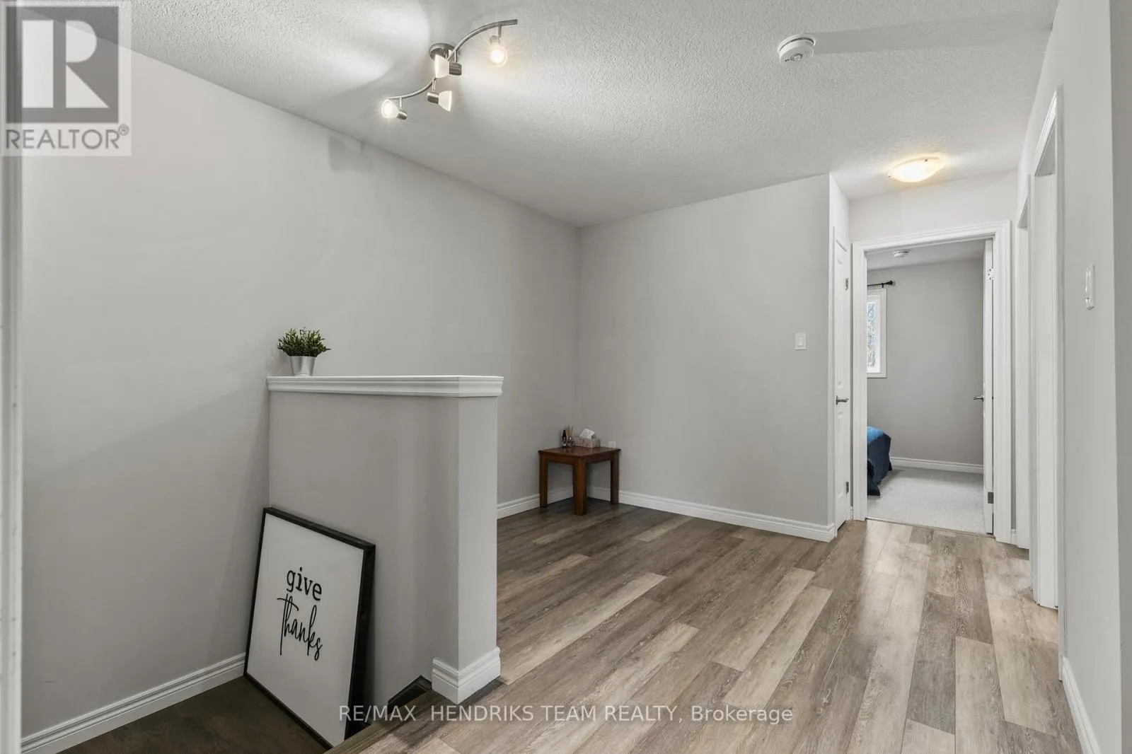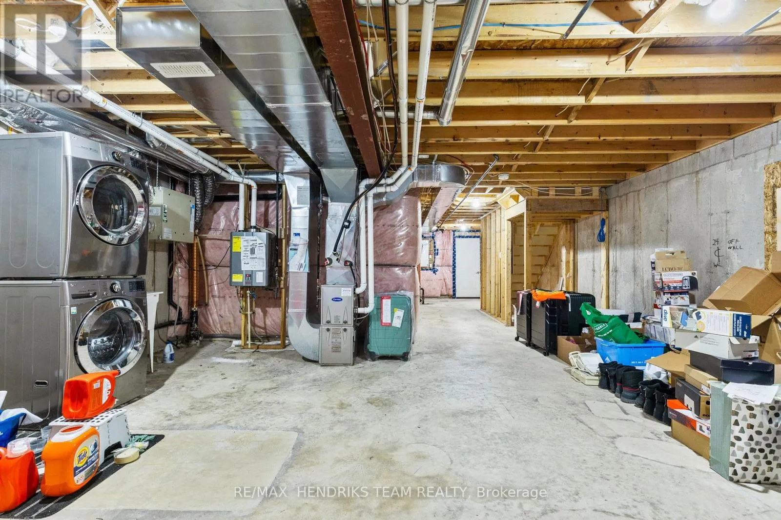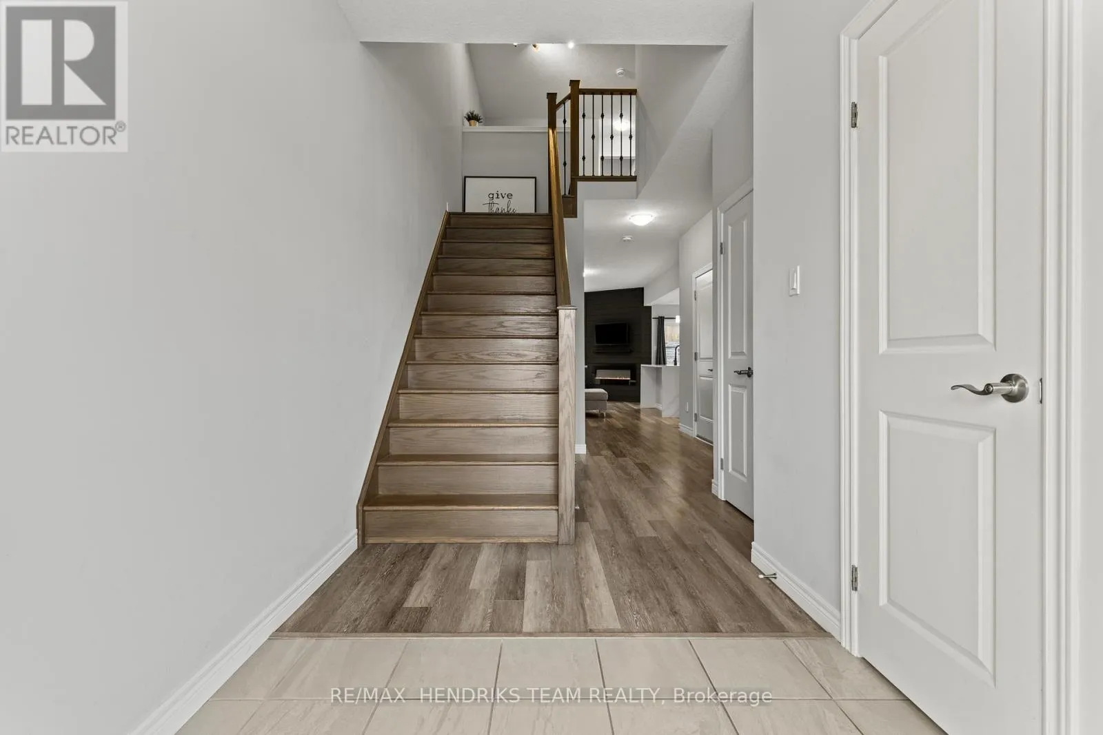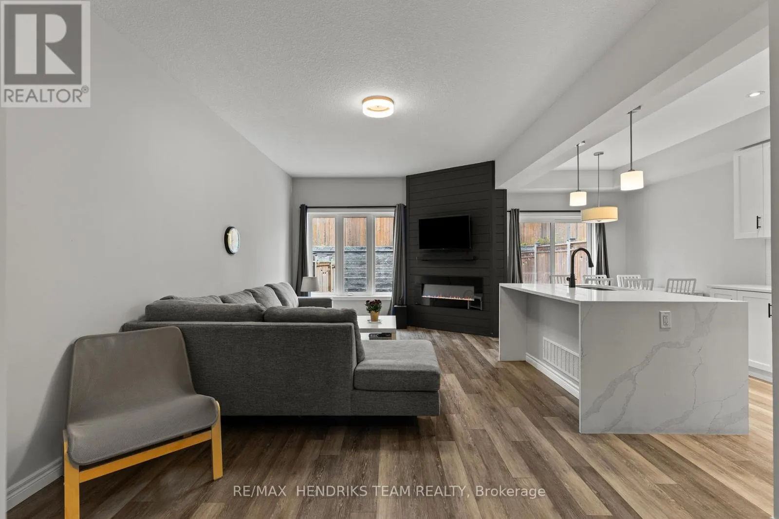 +"PublicRemarks": "Welcome to this beautiful 2-storey townhome in the heart of Smithville! The main floor offers modern vinyl flooring throughout, a convenient powder room, and a stunning custom built-in TV feature wall with an electric fireplace. The contemporary kitchen features quartz countertops with a waterfall edge, stainless steel appliances, and a range microwave. Upgraded oak stairs with sleek steel spindles lead to the second level, where you'll find plush carpeted bedrooms. The spacious primary suite includes a 3-piece ensuite and walk-in closet. Two additional guest bedrooms-each with double closets-are serviced by their own 4-piece bathroom. An unfinished basement provides future potential, while the rear deck offers the perfect space for outdoor entertaining. A must-see home! (id:62650)"