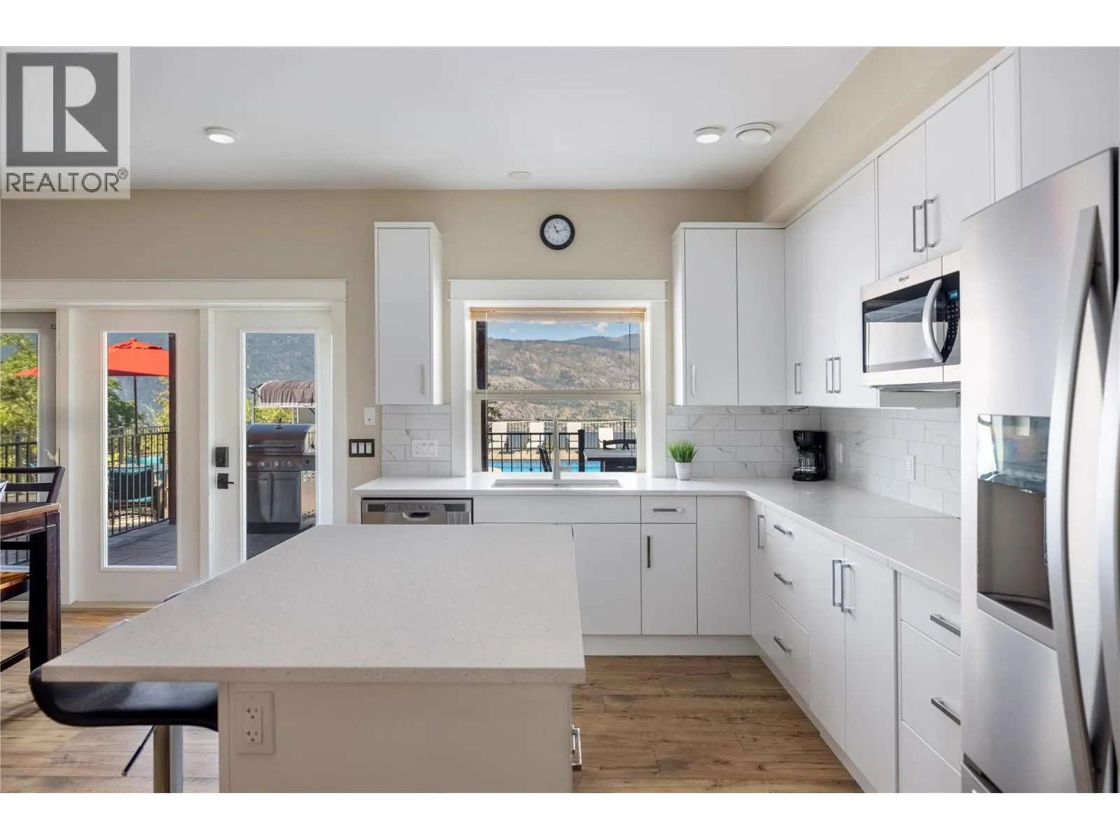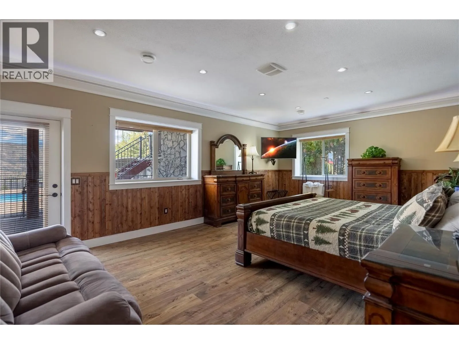 +"PublicRemarks": "TUSCANY style COUNTRY VILLA with EPIC WATER and Vineyard VIEWS. Turn-key Airbnb or large family home. Almost, 6,000 SQ FT. on private 1 acre lot. West-facing views of Lake Okanagan. Grand pool & courtyard. RV parking. Gated property. Ubiquiti wifi system. Raised gardens, fruit trees & outbuilding/studio. Perfect for hosting events, 4 Wineries & Pebble Beach within walking distance. Main level features a chalet-style great room, vaulted ceilings, tile floors, skylights, exposed beams, dramatic floor-to-ceiling wood fireplace, chef’s kitchen, office, deck, Primary suite with gorgeous 5-piece ensuite, walk-in closet & in-floor heating. Upstairs has 2-bedrooms, skylights, walk-in closets, Jack and Jill 5-piece bath, balcony & in-floor heating. Above the garage is a 2-bed, 4-piece bath in-law suite with skylights, granite, wood & tile finishes & private entrance. Lower-level walkout presents a full 3-bed, 3-piece bath in-law suite with granite feature wall, quartz countertops, tile, wood finishings, in-floor heating & access to the pool deck. 3 car garage with 8-ft. door height, entertainment area with pool table, pellet stove, bathroom, connected to heated RV garage with 14 ft ceiling & storage loft. Your private resort: in-ground heated pool, hot tub, outdoor shower & bathroom, and expansive patio spaces. Breathtaking views and beautiful grounds perfect for a picturesque wedding venue. Kelowna International Airport 15 minutes away. This estate truly has it all. (id:62650)"