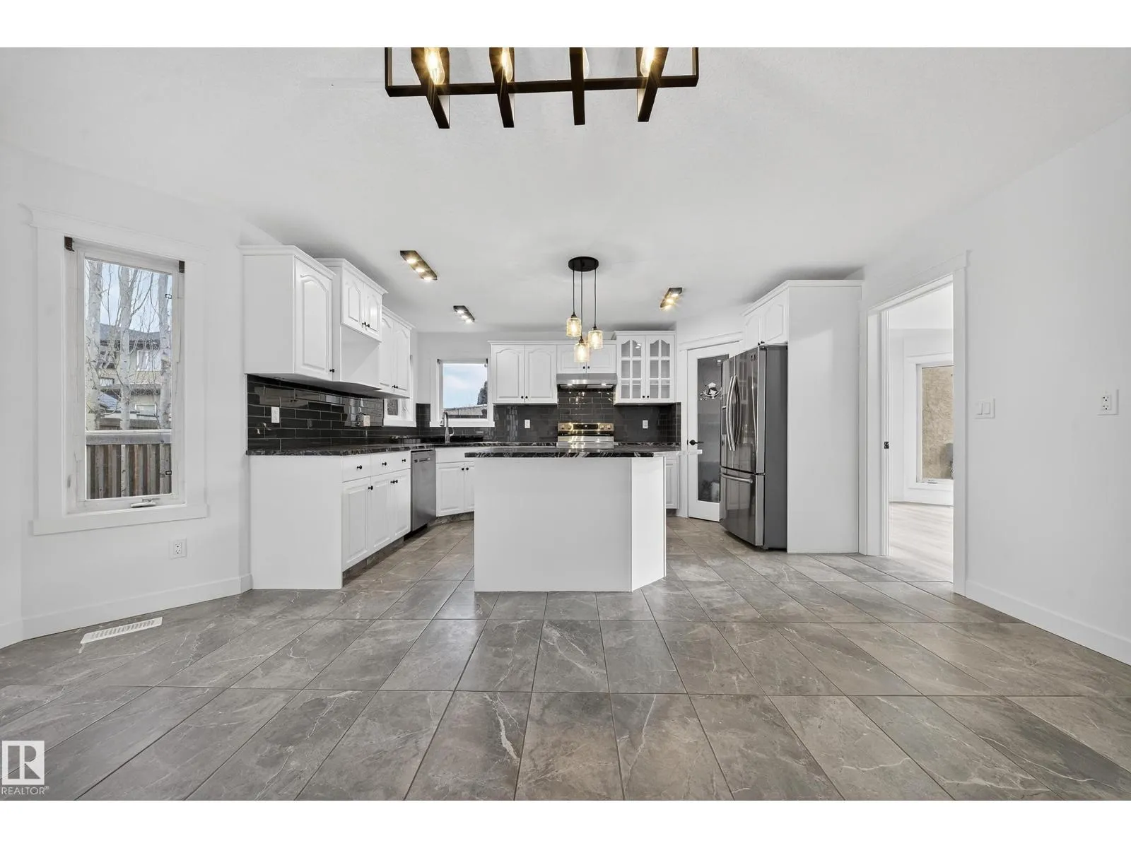 Stunning home with a grand entrance and bright front sitting area featuring high ceilings and abundant natural light, plus space for a formal dining room. Main floor includes a beautiful office with modern fixtures, a cozy living room with fireplace, and a gorgeous kitchen with large island and ample pantry space. Upper level offers a spacious primary bedroom with walk-in