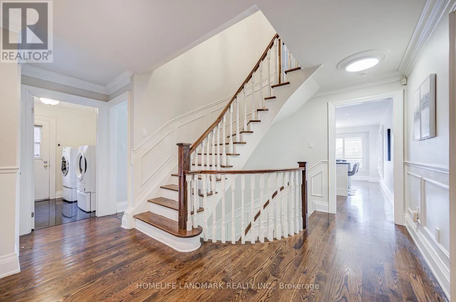 +"PublicRemarks": "Nestled in sought-after Falgarwood, this custom-renovated home sits proudly on a premium 70 x 125 ft lot, offering a rare blend of luxury, style, and convenience. A charming covered veranda leads you into a bright foyer and an impressive open-concept layout highlighted by vaulted coffered cathedral ceilings.Every detail has been thoughtfully curated w/engineered hardwood floors, smooth ceilings, pot lights, wainscoting, and meticulous custom carpentry are showcased throughout. The chef's kitchen features a breakfast bar, built-in appliances, quartz countertops, a pot filler, and an abundance of natural light.Just a few steps down, the great room feels both elevated and cozy w/10ft ceilings, with custom built-ins and a fireplace that opens seamlessly to a second covered veranda-outdoor living overlooking an oversized private yard.The main-floor primary suite is tucked away for privacy, complete with a walk-in closet and ensuite privileges. A beautifully designed mudroom with laundry and garage access adds everyday functionality to the main level.A statement luxury staircase leads to a den nook with a custom built-in desk and storage, creating the perfect work or study space. The upper level offers three additional bedrooms and a spa-like bathroom, ideal for families.This home truly has everything the today's buyer is seeking-location, lot size, top school district, soaring ceiling heights, carpet-free living, extensive electrical upgrades, and a walk score of 10+. Follow your Dream, Home. (id:62650)"