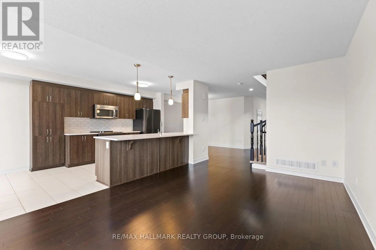 OPEN HOUSE – November 22nd & 23rd from 1:00 P.M. to 3:00 P.M. – Welcome to this beautifully upgraded Marseilles II end-unit townhome offering 1,740 sq ft above grade, an extended lot, and no rear neighbours. This premium Valecraft Homes layout stands out immediately with its sunken foyer, rich hardwood floors, and the dramatic curved staircase that opens onto a