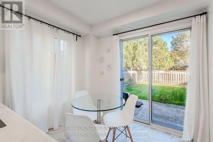 +"PublicRemarks": "Welcome to this bright and spacious townhouse offering over 1,300 sq. ft. of thoughtfully designed living space. The open-concept main floor is ideal for modern living, featuring a large kitchen with center island, ample counter and cupboard space, and a dining area that opens to a fenced private backyard, perfect for summer gatherings and outdoor entertaining. The living room provides generous space and a gas fireplace, creating a cozy focal point for colder months and family time. Upstairs, the primary retreat is a true highlight, featuring double closets, large windows, and a 4-piece ensuite. Two additional generously sized bedrooms with large windows and double closets provide plenty of room for family, guests, or a home office.The partially finished basement offers flexible space for a rec room, hobby area, or additional living area, with the added potential of a rough-in for a 4th bathroom. Additional features include no sidewalk, three driveway parking spaces, and a garage space, adding convenience and accessibility. All of this is situated in the highly desirable Courtice community, close to schools, highways, restaurants, shopping, and so much more making this home an exceptional opportunity for anyone looking for space, comfort, and convenience. (id:62650)"