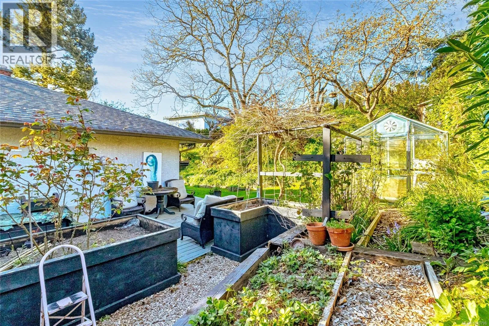 +"PublicRemarks": "Exceptional opportunity located in one of Esquimalt’s best-kept secrets. This charming 1955 single-level bungalow sits on a beautifully landscaped 15,000 plus sq.ft. lot in the desirable Parklands area off the back trails of Gorge Vale golf course. The property offers extensive road frontage and a convenient semi-circular driveway. Inside, the home features classic coved ceilings, wood flooring, an updated kitchen, modern four-piece bathroom, and two comfortable spacious bedrooms. The formal living and dining rooms are complemented by a bright family room on the south side of the home. Easy access to the private garden and backyard from a spacious wraparound west-facing custom designed deck. Zoned RS-5 and eligible for Esquimalt’s RSM-2 small-scale multi-family zoning, the property presents excellent development potential for up to four dwelling units. Ideally located close to ocean parks, shopping, services, transit, and Gorge Vale Golf Club. Don’t miss this rare offering on a large, peaceful garden lot in a quiet neighbourhood. (id:62650)"