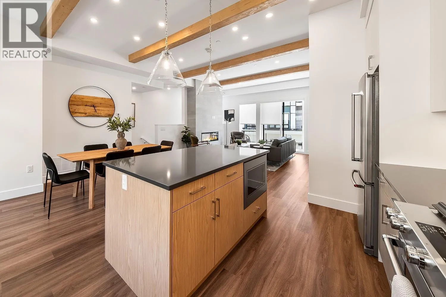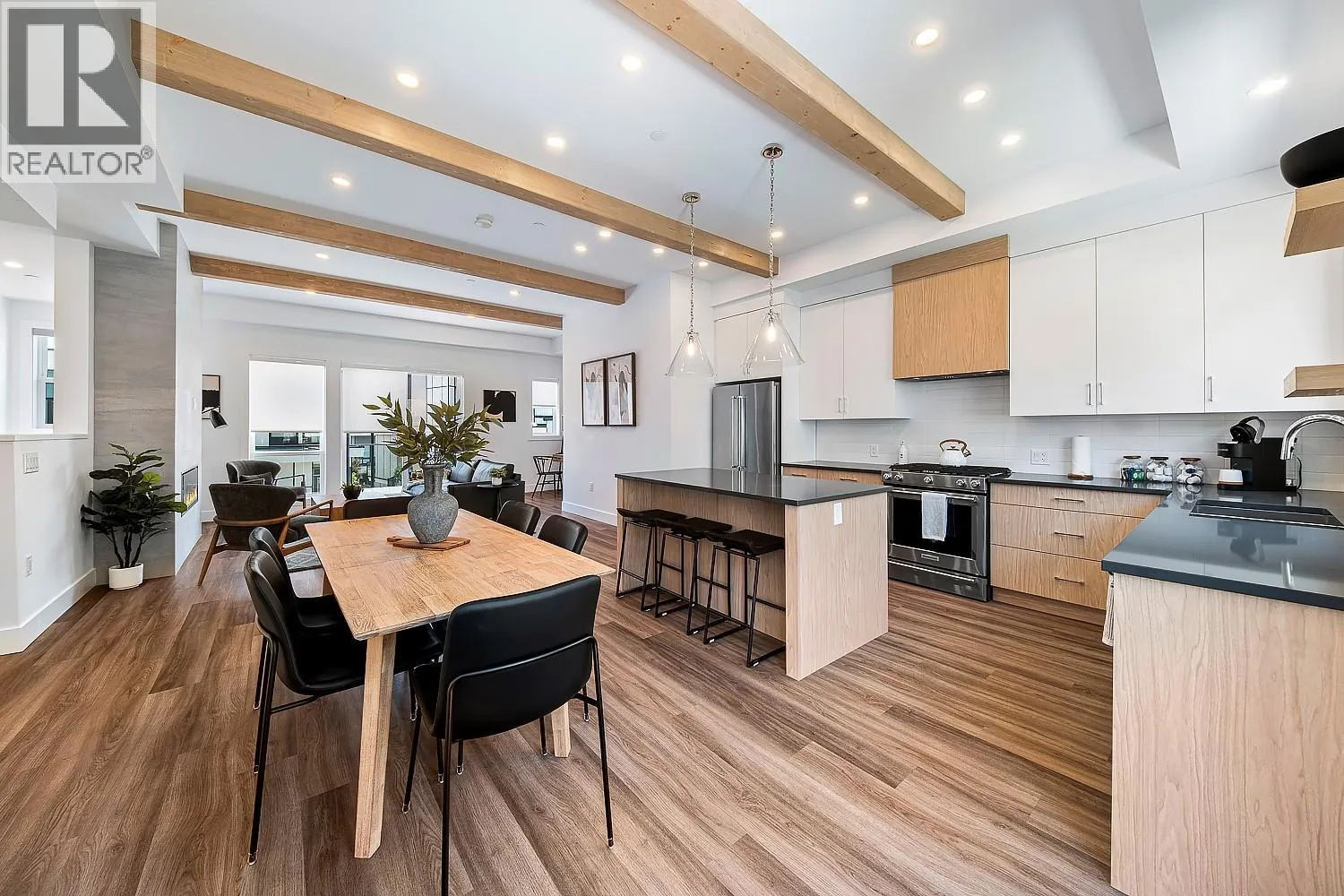This Shelter Bay townhome is our B floorplan in our Sail colour scheme and comes with a wonderful 1,920 square feet of living space featuring, 3 bedrooms and 2.5 bathrooms, a large 406 sq foot roof top terrace and a spectacular view of Okanagan Lake. This home comes with side-by-side double car garage, open concept living plan, luxuriously finished with