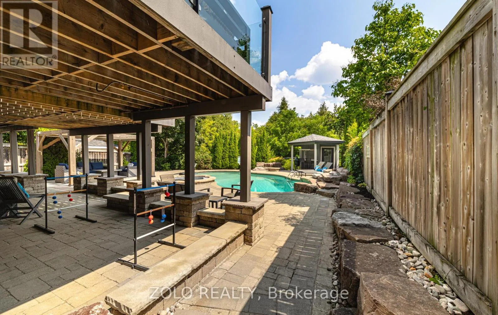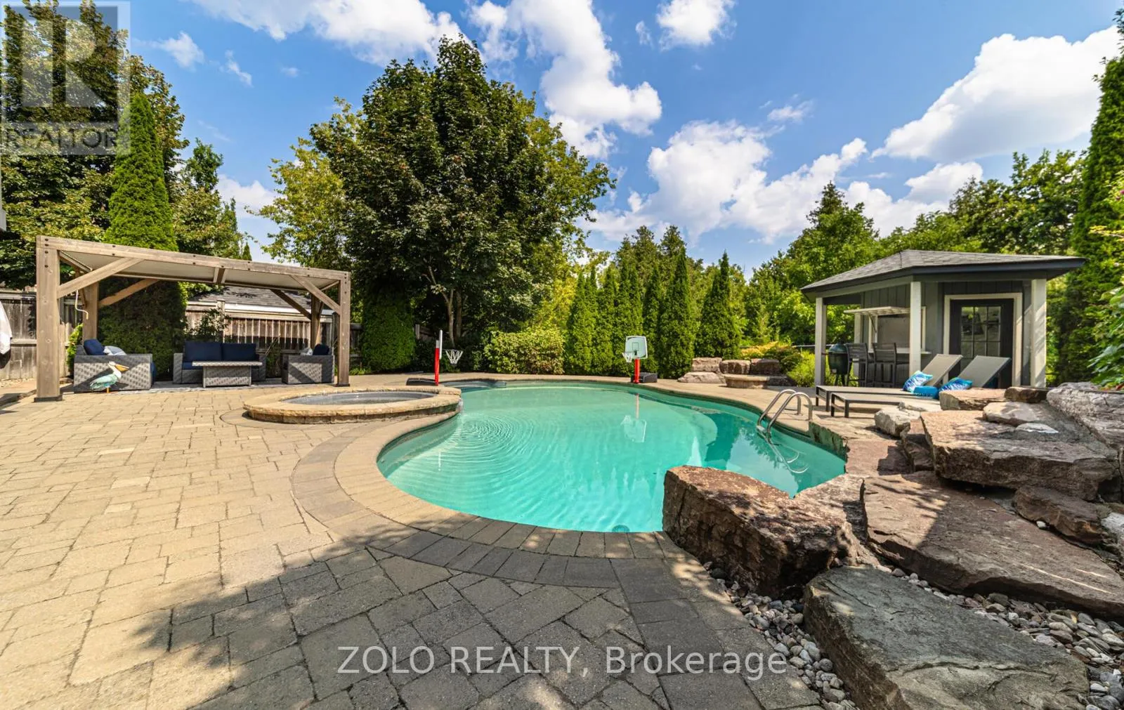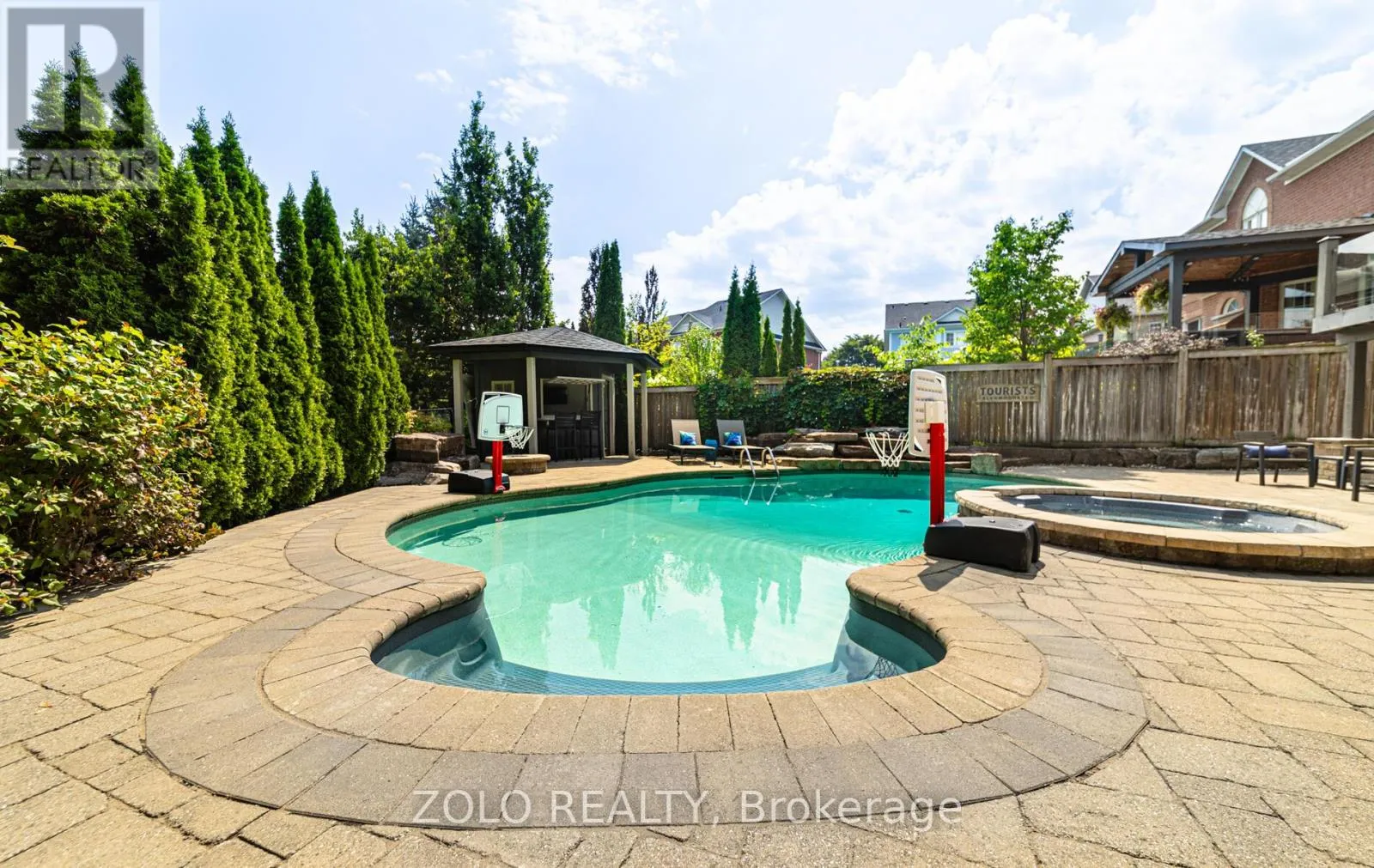 +"PublicRemarks": "Set on one of Brooklin's most coveted streets, this exceptional Southampton Model Queensgate home offers over 4,000 sq. ft. of professionally designed & decorated luxury living space. Situated on a 50 ft lot backing onto greenspace, this home delivers both sophistication & serenity. The attention to detail is evident from soaring ceilings & rich hardwood flooring throughout to designer lighting & in-ceiling speakers that set the tone for effortless elegance. At the heart of the home lies the entertainers kitchen, outfitted with high-end appliances incl. a Jenn-Air fridge, wall oven, microwave, & Thermador cooktop. This culinary haven seamlessly opens to the oversized great room w/ gas fireplace, all overlooking the breathtaking ravine backdrop & walks out to custom Trex deck overlooking the Backyard Oasis. In addition to a separate Living & Dining Room, the main floor also features a home office (also ideal as a childrens playroom), a mudroom/laundry room w/access to a recently renovated garage. Upstairs, the primary suite is a true retreat, with tranquil ravine views, his-and-hers walk-in closets, & a spa-inspired 5-piece ensuite. Bedroom 2 enjoys its own 3-piece ensuite and walk-in closet, while bedrooms 3 & 4 share a spacious 4-piece Jack & Jill bath each with its own walk-in closet. The finished walk-out basement extends the homes entertainment space, a sprawling rec room w/built-in cabinetry, a wet bar & beverage fridge, plus an open games area ideal for hosting family gatherings or poolside celebrations. Step outside to your private backyard oasis, complete w/16 x 32 kidney-shaped in-ground pool, hot tub, pool cabana w/electrical, propane fire pit & extensive landscaping. All of this is within walking distance to top-rated schools & moments from downtown Brooklin, golf courses, the 407, shops, dining & more. Luxury. Privacy. Location. This is more than a home its a lifestyle. (id:62650)"