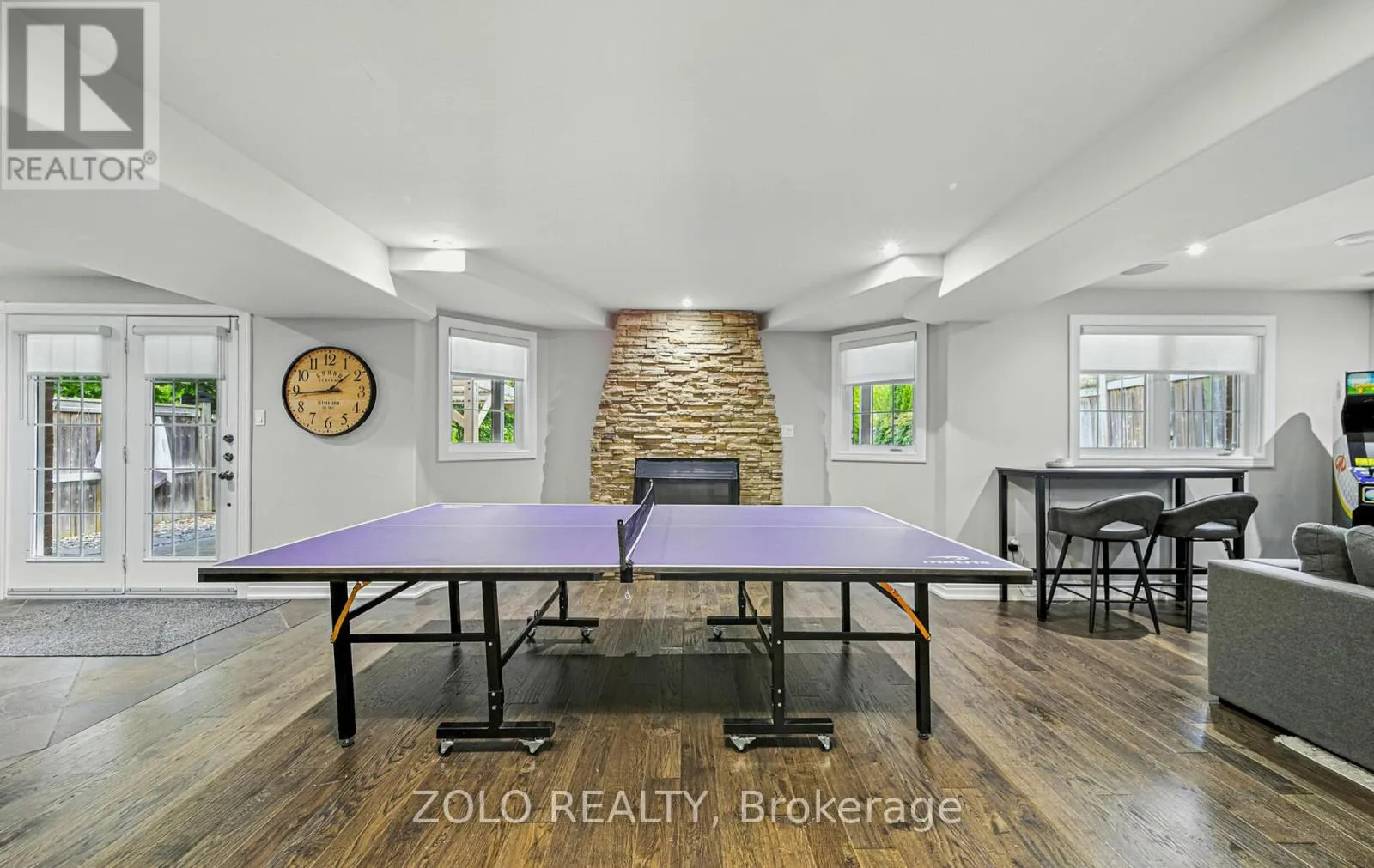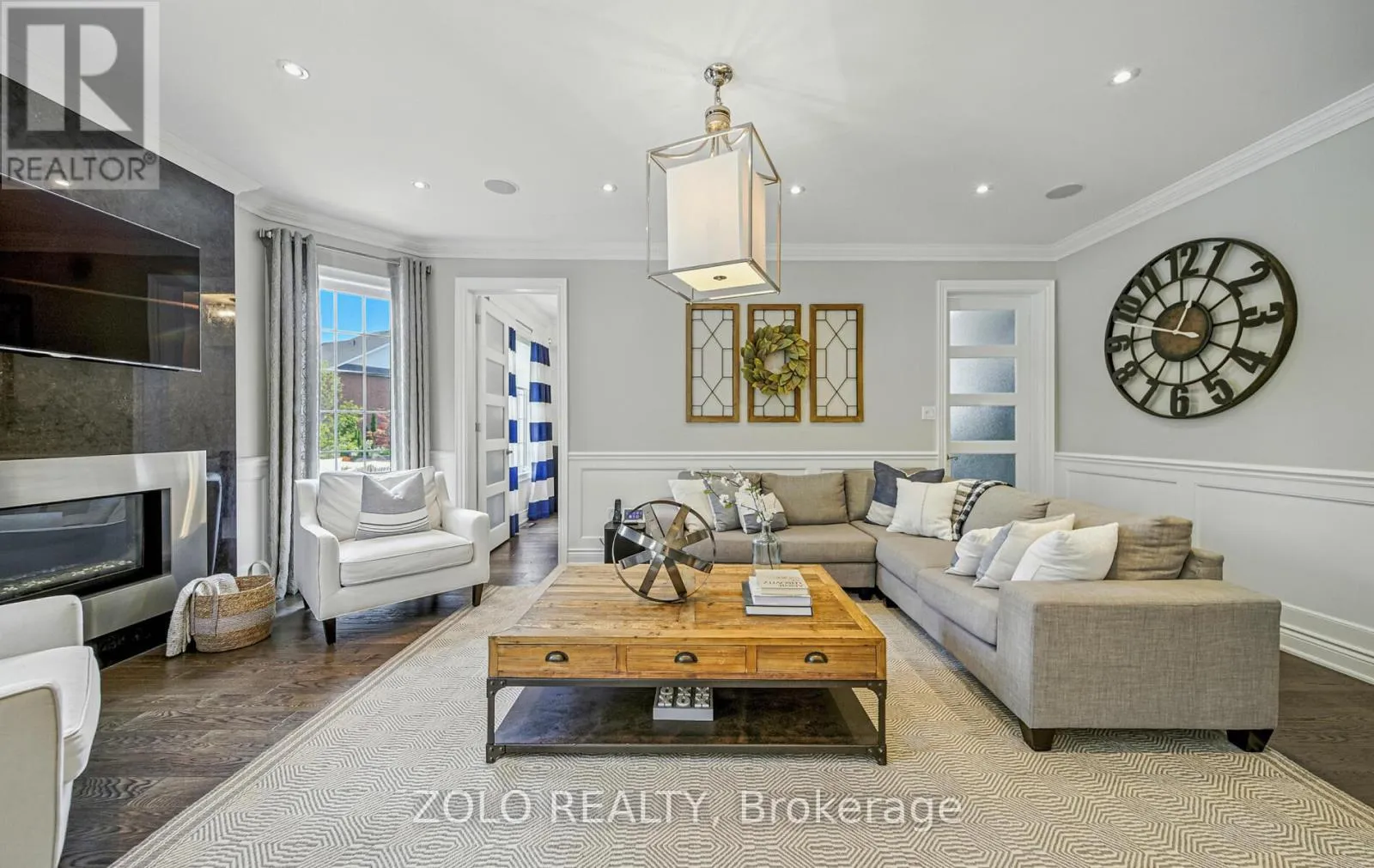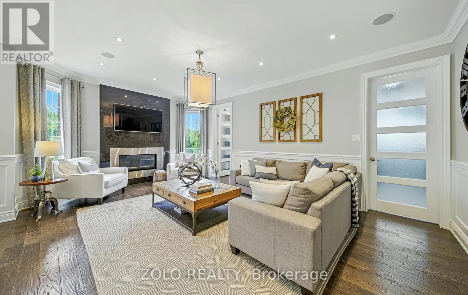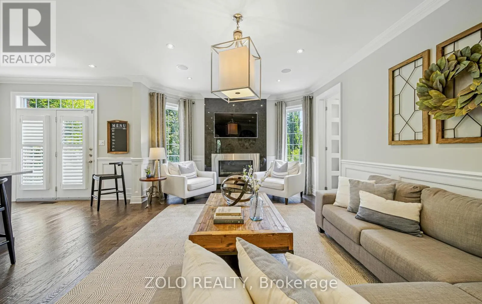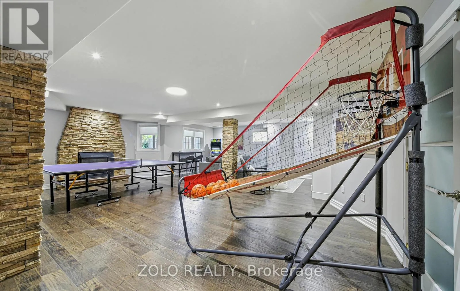 +"PublicRemarks": "Welcome to this exquisite executive residence nestled in one of Brooklin's most desirable pockets. Thoughtfully designed with elegance and functionality in mind, this home boasts an impressive layout with soaring ceilings, expansive windows, and timeless finishes throughout. The great room features rich hardwood floors, custom pot lighting, and a cozy gas fireplace, creating the perfect atmosphere for family gatherings or sophisticated entertaining. A set of double doors opens to a spacious main floor office with a cathedral ceiling & abundant natural light - ideal for working from home. Host memorable dinners in the formal dining room adorned with a tray ceiling & large window. The chef-inspired kitchen is a showstopper, with quartz countertops, porcelain stone floors, custom backsplash, high-end stainless steel appliances including a gas range-top, and a large breakfast island. The adjoining breakfast area opens onto a private deck and fully fenced backyard oasis - perfect for morning coffee or summer BBQs. Convenience meets comfort with a main floor laundry room and powder room completing the first level. Upstairs, the luxurious primary retreat is a sanctuary unto itself, featuring a serene sitting area, a generous walk-in closet with custom organizers, and a spa-like ensuite with dual vanities and a glass shower with bench seating. Three additional bedrooms provide plenty of space for family or guests, and share an updated main bathroom. The fully finished basement extends the living space with a large recreation room anchored by a stunning electric fireplace with heat that can be altered and lighting to suit mood, another bedroom, and 3-piece bathroom - ideal for overnight visitors or in-law potential. Step outside to your beautifully landscaped backyard, complete with a relaxing hot tub- your own private escape. Located in a prime family-friendly neighbourhood close to top-rated schools, parks, and all amenities, this exceptional home truly has it all. (id:62650)"