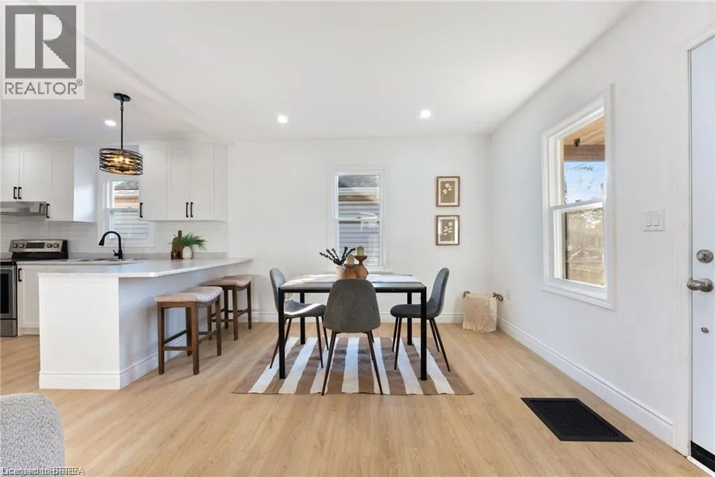 +"PublicRemarks": "Welcome to 25 Dundee Street, Brantford. This beautifully renovated 3-bedroom, 2-bathroom bungalow with over 1300 square feet of living space is fully updated and move-in ready for you and your family. Located in a family-friendly neighbourhood, the home is close to all major amenities — including grocery stores, top-rated schools, parks, the public library, restaurants, easy Highway 403 access, and the world-class Wayne Gretzky Sports Centre. Step inside to a bright, open-concept layout featuring a brand-new kitchen with a breakfast peninsula, stainless steel appliances, a separate dining area, and a spacious living room. Recent upgrades include a 100-amp breaker panel, new windows (2025), roof (2025), and doors (2025), high-efficiency furnace (2025), luxury vinyl plank flooring, LED pot light and much more. The fully finished basement offers exceptional versatility, complete with a large bedroom and walk-in closet, a recreation room, a modern bathroom with a glass shower, and a generous laundry area. A separate side entrance provides excellent potential for an in-law suite or rental opportunity. Outside, enjoy a 15' x 25' solid block workshop with new windows and an insulated garage door — perfect for a workshop, business, hobbies, or extra storage. The spacious backyard features a lovely patio, ideal for relaxing or entertaining on warm summer evenings. Don’t miss your chance to make this stunning home yours — schedule your private viewing today! (id:62650)"