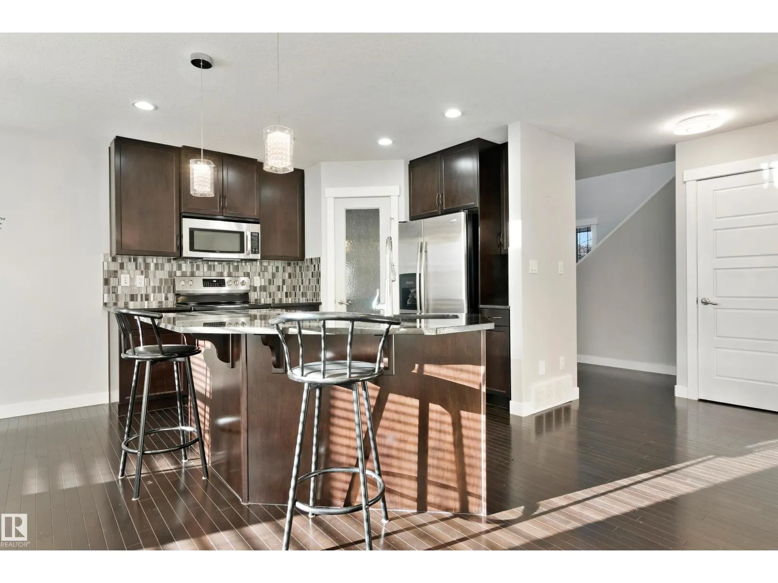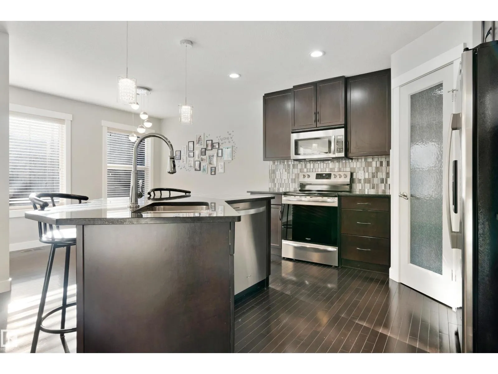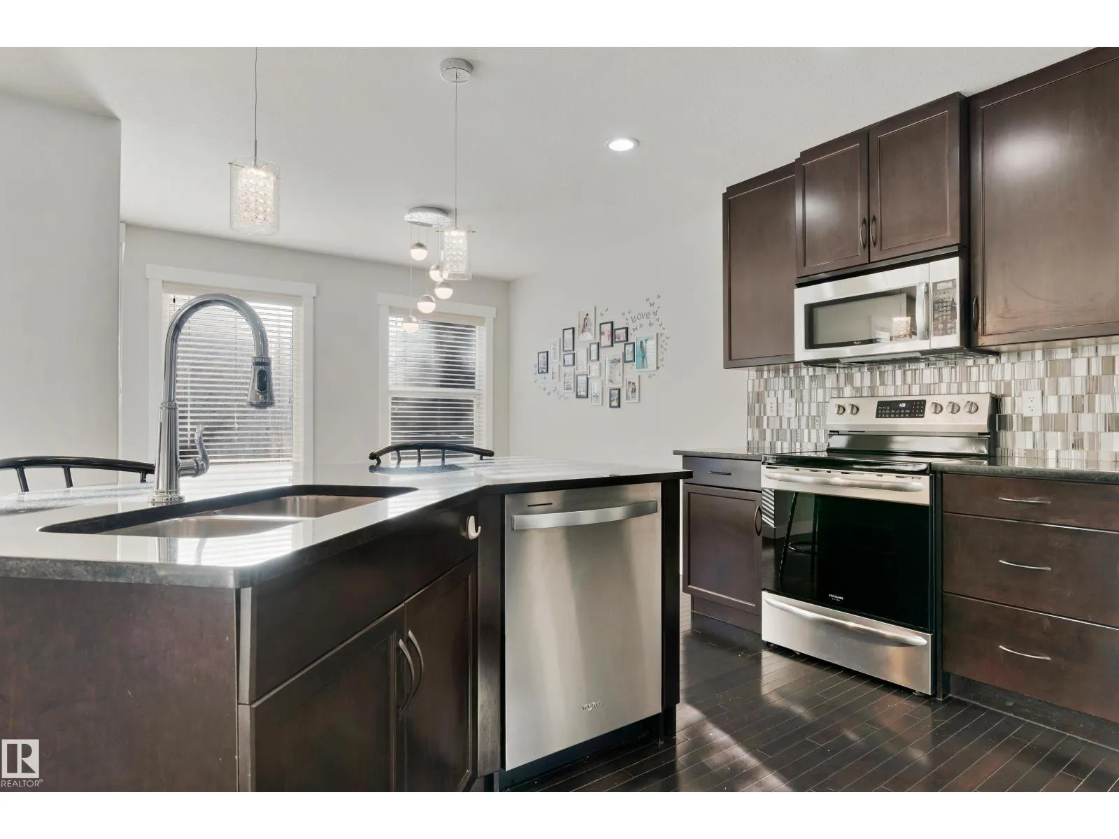 Welcome to your new home in beautiful Summerside!Located on a quiet street,this stunning 1705 sqft-2-storey home(built in 2010)features 3 bed,3 bath & impressive curb appeal with its gorgeous stone & vinyl exterior.Step inside to an inviting open-concept main floor complete w/ rich dark hardwood,black granite countertops and large chef’s kitchen equipped with microwave hood fan,new stove & brand-new dishwasher.The main