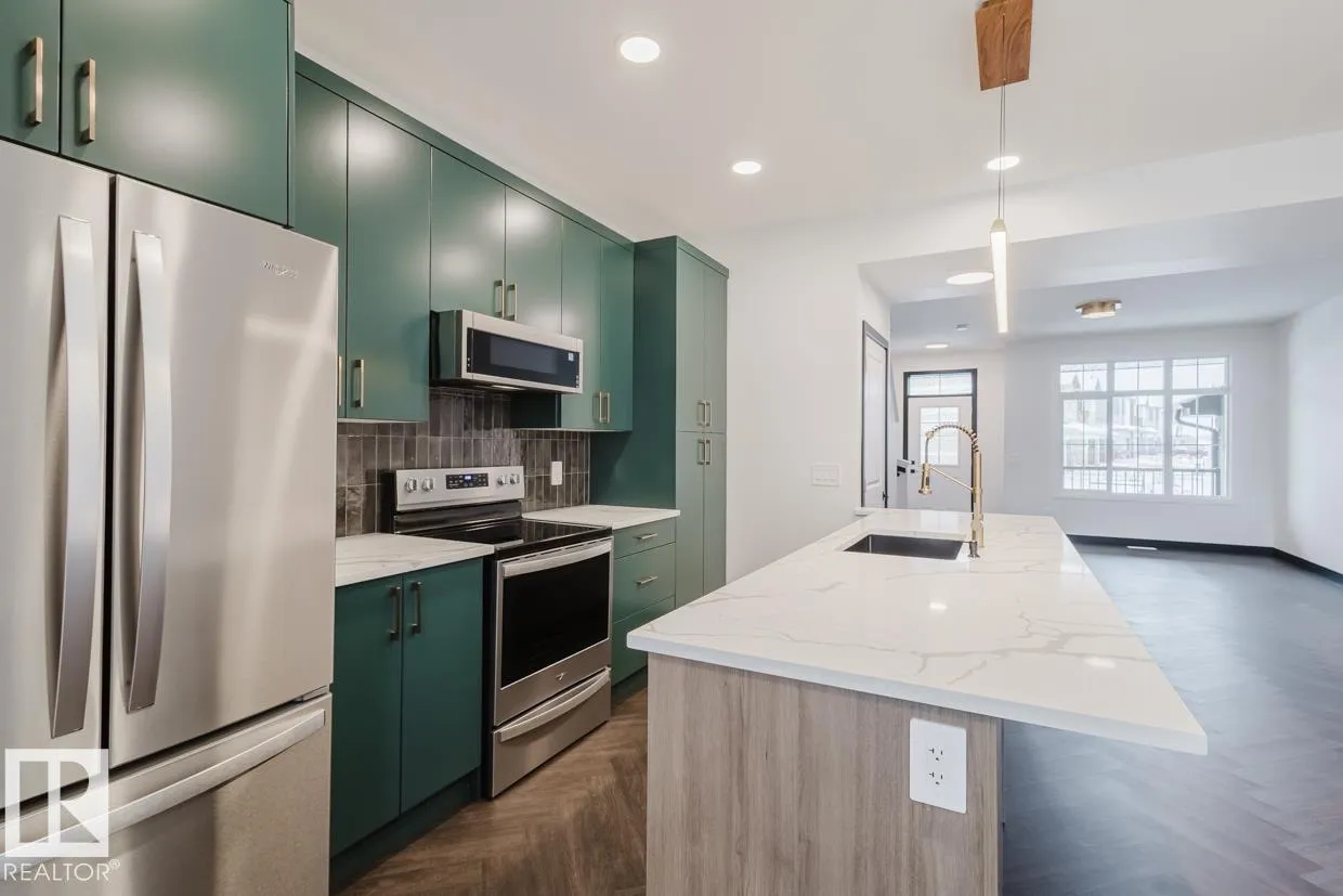 Discover Your Dream Home in Kinglet Gardens. This stunning 3-bedroom, 2.5-bathroom duplex seamlessly blends style and functionality. The main floor boasts 9′ ceilings and a convenient half bath, perfect for guests. The beautifully designed kitchen is a highlight, featuring 42 upgraded cabinets, quartz countertops, and a waterline to the fridge. Upstairs, enjoy the flex area, spacious laundry room, full 4-piece
