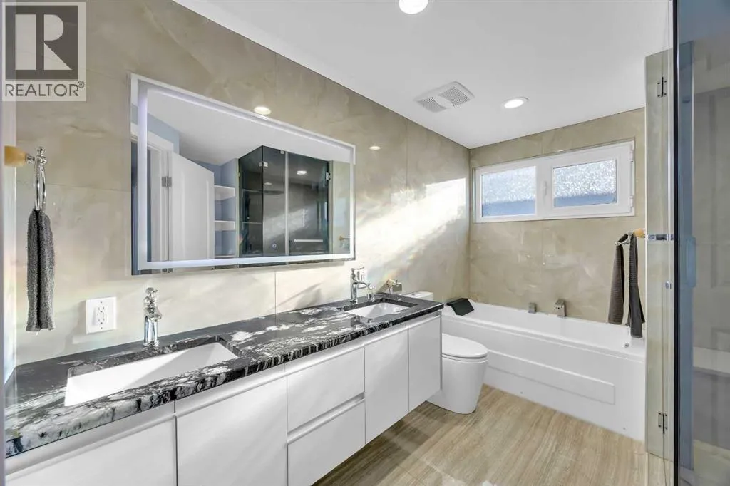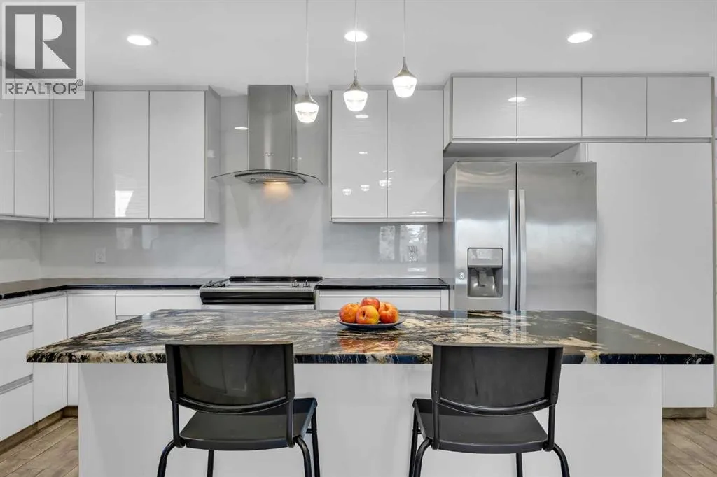Fully renovated 4-level split in West Haysboro offering over 2,500 sq. ft. of living space. A legal walk-out basement suite, ideal for second family, provides a full kitchen, living room with a 72” electric fireplace, two bedrooms, a 3pc bathroom, and in-floor heating.An open-concept kitchen highlights the main floor, featuring oversized cabinets, stainless steel appliances, granite counters, an eating bar,