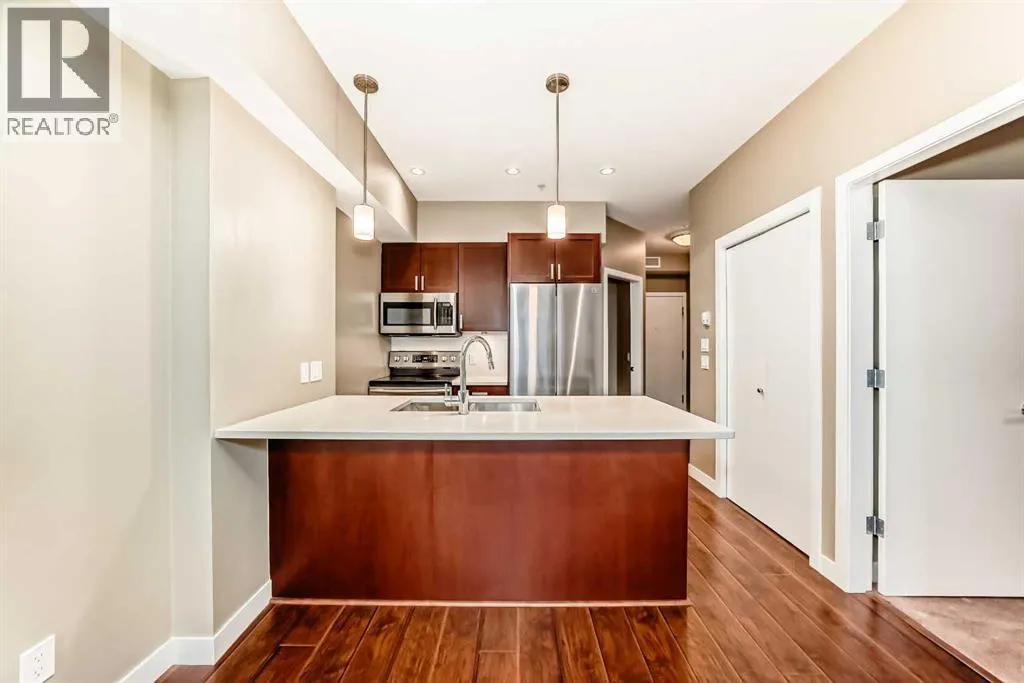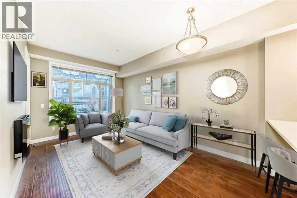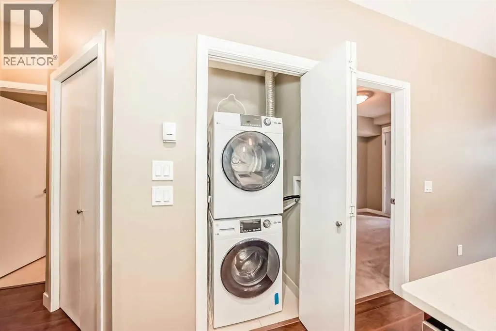 Great value for first-time buyers or investors! This ground-floor, one-bedroom plus den condo is located in Stonecroft at Auburn Bay, one of Calgary’s most popular lake communities. The bright, open layout features 9-foot ceilings, and a modern kitchen with quartz countertops and updated stainless steel appliances, including brand new fridge and washer/dryer.The living area includes a cozy electric fireplace and