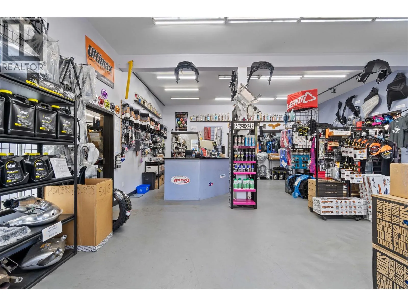 This mixed-use investment opportunity in Sicamous offers strong commercial appeal with multiple income streams in a high-visibility location. Pricing includes the building, the established snowmobile & motorsports business, plus over $200,000 in stocked parts inventory. The commercial level features a large retail space along with a spacious shop & garage with in-floor heating. The business is now operating under new