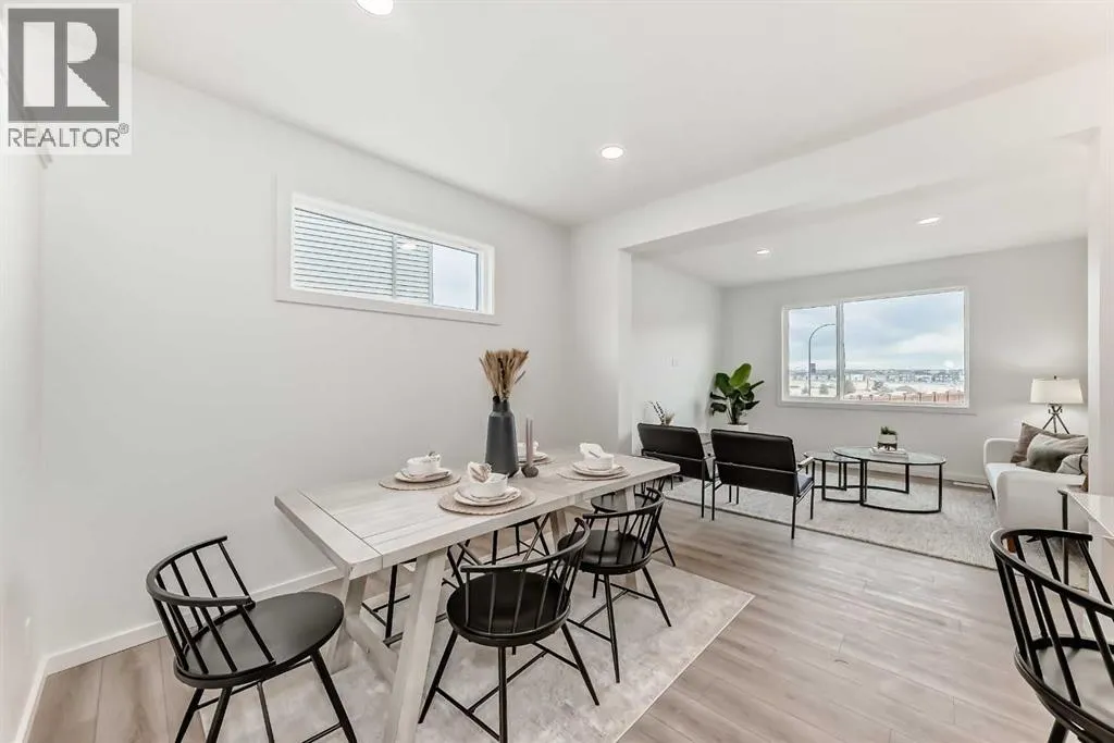 +"PublicRemarks": "Welcome to this beautifully finished 1,738 sq ft home in the vibrant community of Livingston. Designed with modern living in mind, this three-bedroom, two-and-a-half-bath property combines style, comfort, and function.The main floor features 9-foot ceilings, luxury vinyl plank flooring, and a bright open-concept layout, perfect for everyday living and entertaining. The chef-inspired kitchen is complete with quartz countertops, extended upper cabinetry, stainless steel appliances, a built-in microwave, a chimney hood fan, and a knock-down ceiling finish.Upstairs, you will find three generously sized bedrooms, including a primary suite, a spa-like ensuite with dual sinks and a walk-in shower, and a spacious walk-in closet. A full bathroom and a convenient laundry room with extra shelving complete the upper level. Plenty of natural light and thoughtful upgrades throughout add to the home’s appeal. A separate side entrance provides direct access to the unfinished basement. With its modern finishes, functional layout, and sought-after location, this home is an ideal choice for families. (id:62650)"