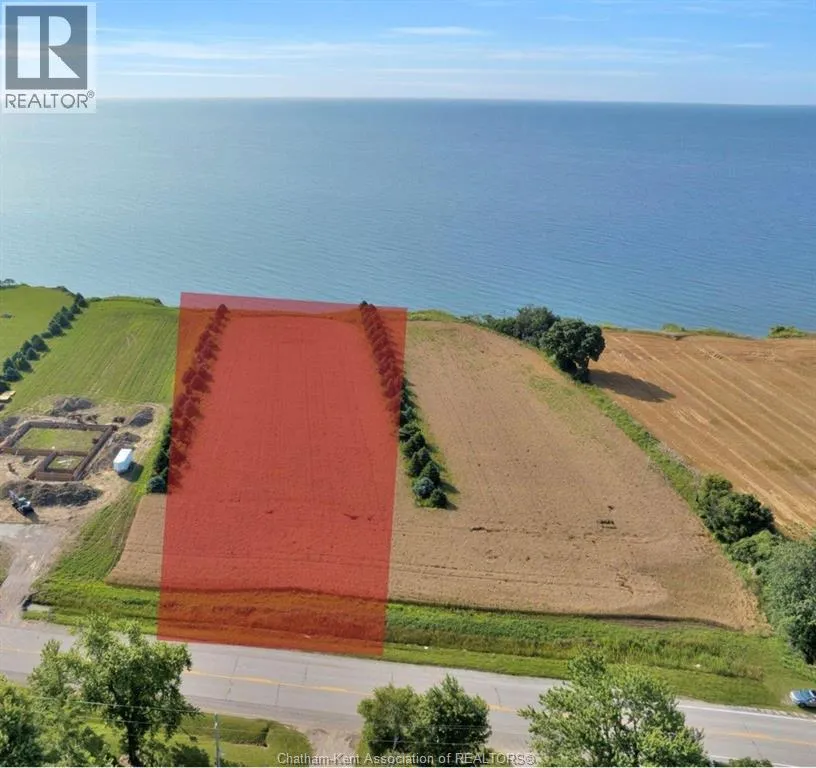 Build a new custom dream home overlooking beautiful Lake Erie! Just over 2 acres, this area is known for beautiful waterfront views and gorgeous sunsets. Natural Gas, Municipal Water and Hydro connections are available at the road. Check with all service providers for connection fees. Located near the village of Merlin, 30 minutes from Chatham, 20 minutes from Blenheim. Buyer