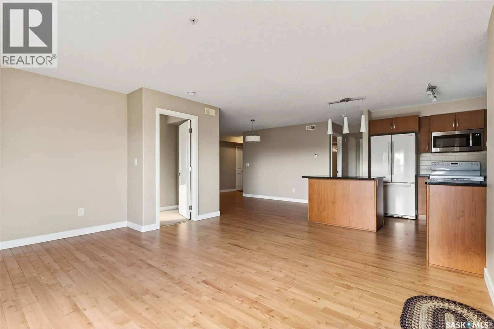 +"PublicRemarks": "Beautifully maintained South- and East-facing corner unit with an open floor plan and an abundance of natural light. This 2 bedroom + den, 2 bathroom condo offers in-suite laundry, underground parking, and exceptional views of green space in an extremely quiet setting. Large windows maximize the wrap-around exposure, bathing the living areas in natural light. The kitchen features a new microwave hood fan, along with fridge, stove, and dishwasher; dark maple cabinetry with soft-close drawers, granite countertops, a centre island with bistro seating, and laminate flooring throughout. The dining area is conveniently situated off the kitchen and flows nicely into the spacious living room. A garden door opens to the wrap-around balcony with glass panels and natural gas BBQ hookup, overlooking wide open fields and tranquil natural green space — a peaceful outdoor extension of your living area. The generous primary bedroom features a walk-in closet and a private ensuite complete with a two-seat shower. The second bedroom is also spacious, and the den is ideal for an office or cozy reading room. The in-suite laundry/storage room includes washer, dryer, and freezer for added convenience. Additional features include underground parking (included in the condo fees), and ample visitor parking. Residents also enjoy access to the building’s amenities room, exercise room, and elevator. Condo fees include: heat, water/sewer, garbage removal, snow removal, lawn care, reserve fund contribution, common insurance, and exterior building maintenance (id:62650)"