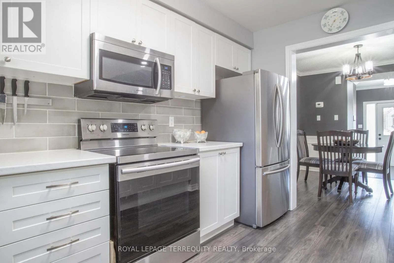 +"PublicRemarks": "Perfectly positioned on a tranquil court in one of Courtice's most loved neighbourhoods. A beautifully finished freehold end-unit townhome offering effortless, move-in-ready living. Bright & open concept main floor features powder room, combined living & dining area with newer laminate flooring & luxury vinyl throughout, upgraded lighting, and freshly painted. Large bright Windows throughout the home letting loads of Natural Light in a sun-filled renovated kitchen, perfect for family gatherings. Kitchen reno (2022) includes modern backsplash, new oven range, built-in micro/hood vent, built-in dishwasher & large double sink. Enjoy entertaining with ease, walk out to an oversized yard & large patio. Enjoy a private, beautifully landscaped backyard oasis ready for your finishing touches. The upper level offers three thoughtfully designed bedrooms, highlighted by a spacious and light-filled primary retreat with laminate floors, double closet, a semi-ensuite bath, and chic updated lighting. The second level is entirely carpet-free, showcasing sleek, newer laminate flooring throughout. Large open concept finished basement, newer laminate flooring, pot-lights, and plenty of storage space. Located in a prime neighbourhood of Courtice, with beautiful views of the pond, close to top-rated schools, beautiful parks, the community centre, and every amenity you could need. Enjoy quick and easy access to Hwy 401, 418, 407, and public transit. This immaculately maintained home is truly move-in ready-professionally updated for both style and comfort. Don't miss this rare, family-friendly home in a highly desirable neighbourhood - a true turnkey opportunity, perfect for first-time buyers! (id:62650)"