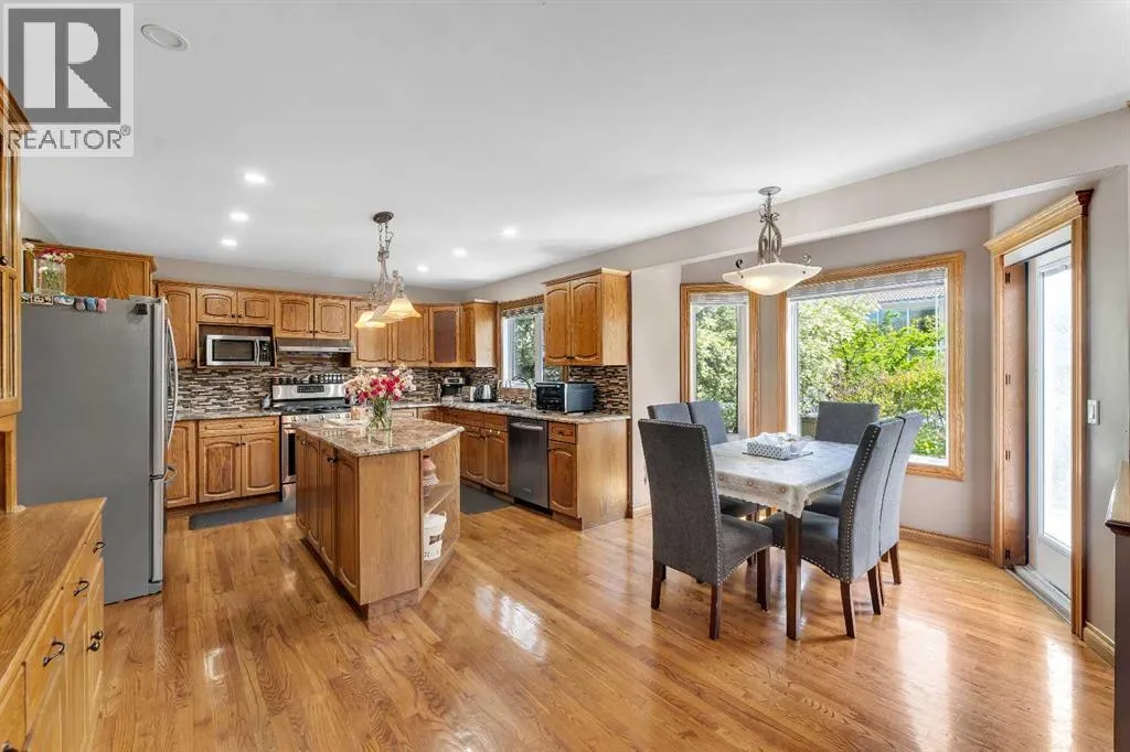 +"PublicRemarks": "Imagine stepping through the front door and being welcomed into a bright, open foyer, complete with a convenient coat closet. From here, your eyes are drawn straight ahead into the spacious living room, where a large bay window frames views of the beautifully manicured front yard and fills the space with natural light. Warm hardwood flooring guides you through this inviting main level and into the adjoining dining area, which flows seamlessly into the updated kitchen. Here, quartz countertops, extensive cabinetry and high-quality stainless steel appliances creates a perfect blend of style and functionality. A cozy breakfast nook offers the ideal spot for casual morning coffee.Heading up to the second level, you’ll find three comfortable bedrooms. The primary suite overlooks the private backyard and features a luxurious ensuite with an oversized walk-in shower, rain head, and four body sprays. Two additional generously sized bedrooms, each with deep closets and large windows, share a beautifully finished 4-piece bathroom boasting custom vanities, floor-to-ceiling travertine tile, and a glass-enclosed soaker tub/shower.Continue down to the walkout basement, where a warm and inviting family room awaits. A classic wood-burning brick fireplace anchors the space, complemented by a wet bar and a convenient 2-piece bathroom. Just a few more steps lead to the lower level, where you’ll find a practical laundry room featuring its own dog/utility shower—perfect for pets, work gear, or muddy boots—as well as direct access to the garage and ample storage.Stepping outside, the backyard is a true retreat. Multiple decks, a patio, mature trees, and perennial gardens create a serene setting for outdoor dining, gardening, or simply relaxing. Tucked into a private corner of the yard, a year-round spa invites you to unwind under the stars, enhanced by thoughtfully placed landscape lighting.This beautifully maintained and thoughtfully updated home offers over 1,700 sq ft of developed living space in the highly sought-after community of Edgemont. Recent upgrades include a new roof (2020), fridge, electric range & oven, over-the-range microwave, and hot water tank (2024), as well as a new washer (2023) Brand New Deck (2025).Located in a well-established neighborhood known for top-rated schools, scenic pathways, parks, and convenient access to major routes, this home seamlessly blends comfort, lifestyle, and long-term value. Come experience this exceptional Edgemont property for yourself—your next home awaits. (id:62650)"