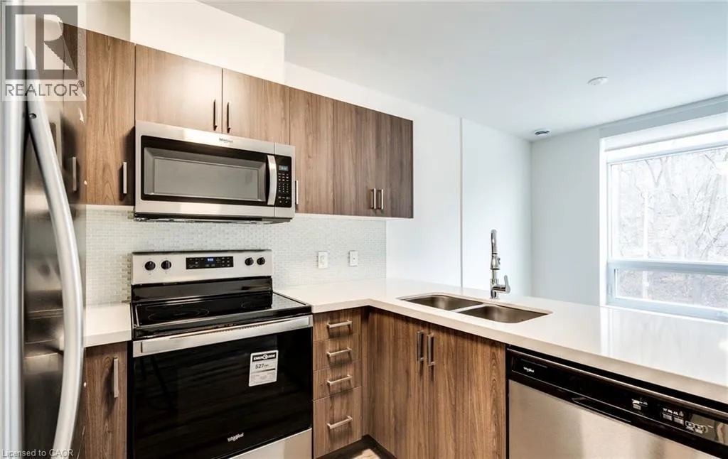 +"PublicRemarks": "This almost 600 square foot open concept property is an absolute must se! This property is made for Hamiltons' Medical Community. The unit boasts an upgraded kitchen featuring stone counters, under mount sink, upgraded cabinetry, stainless steel appliances including dishwasher and ensuite laundry. All rooms are completed with for to ceiling glass windows, modern laminate flooring. The Amenities complete this brand new property with full gym, party room, and brilliant common area outdoor terrace overlooking the city. It's available for move in today! Call to book your private viewing, this wont' last! (id:62650)"