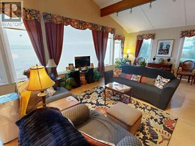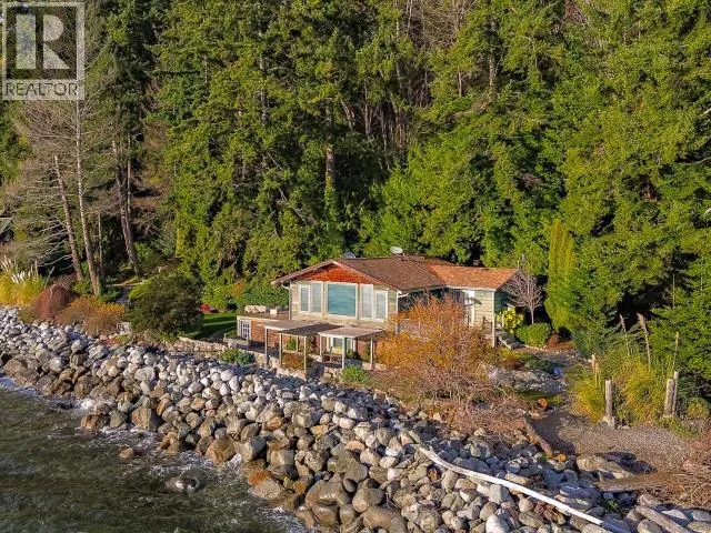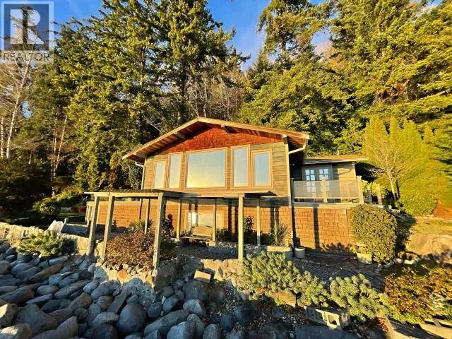 WATERFRONT CABIN ON ACREAGE. Boasting 250 feet of ocean frontage, the property includes the forested acreage above, totalling 5.5 acres of land. Adorable 1-bed, 1-bath cottage was built by one of the first families to settle in the area. Vaulted ceiling in the 13×24′ living room, with breathtaking views of the strait through Low E reflective windows. Beautiful alder kitchen