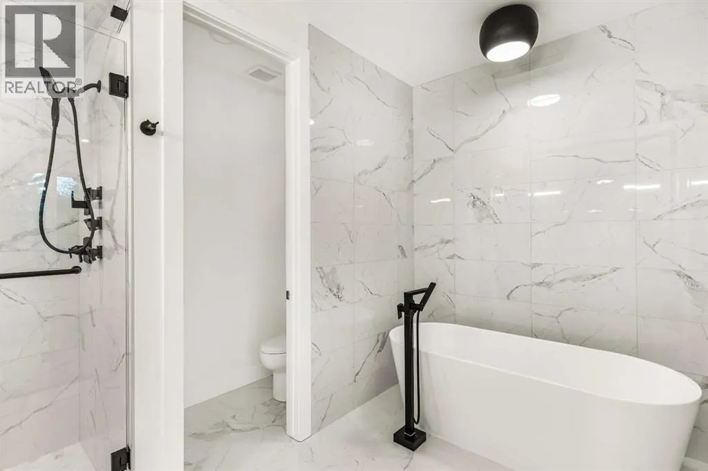 +"PublicRemarks": "Welcome to this impeccably crafted 3-storey duplex offering OVER 3,400+ SQFT of finished living space, built by the reputable ACE HOMES. With 6 BEDROOMS, 4.5 BATHROOMS, and a LEGAL SUITE with a private side entrance, this home is ideal for multigenerational families or those looking for a mortgage helper. The main floor invites you in with a generous foyer and features custom closets, a bench, and wall hooks for everyday convenience. Just off the entrance, a POCKET OFFICE provides a quiet workspace without sacrificing living area. The front-facing dining room enjoys natural light, while the chef-inspired kitchen sits at the heart of the home, boasting stainless steel appliances, built-in microwave and oven, a full pantry, and a large central island that's perfect for entertaining or everyday family meals. The rear living room, bathed in morning light thanks to its east-facing dual patio doors, exudes warmth with its built-in fireplace and cozy atmosphere, seamlessly connecting indoor and outdoor living. Upstairs on the second level, the primary bedroom is a peaceful retreat featuring a luxurious 5-piece ensuite with a freestanding tub, rain shower with bench, and full-height designer tiles—plus the option to install a steam feature for that spa experience at home. Two additional bedrooms with oversized windows, a full bathroom, and a convenient laundry room with washer, dryer, and sink complete this level. The third floor adds a unique layer of lifestyle flexibility with a SECOND MASTER bedroom connected to a Jack & Jill ensuite, plus a BONUS LOUNGE with WET BAR and access to a private BALCONY. Whether used as a guest suite, home office retreat, or entertainment zone, this top floor is a standout feature—offering separation, privacy, and stunning potential. The fully finished basement includes 2 additional bedrooms, a full bathroom, a SEPARATE LAUNDRY, and its own entrance and access to the mechanical room—making it move-in ready for tenants or extended family, wit h privacy and independence built in. Located in one of Calgary’s most desirable inner-city neighborhoods, Parkdale offers the perfect blend of riverside charm and urban convenience. Enjoy being steps away from the Bow River Pathway system, Edworthy Park, and local favorites like Lazy Loaf & Kettle. Commuters will appreciate easy access to Crowchild Trail, while professionals and students benefit from close proximity to the Foothills Medical Centre, Alberta Children’s Hospital, and the University of Calgary. Parkdale is known for its strong sense of community & family-friendly amenities—including playgrounds, off-leash areas, and boutique shops. Whether you're looking for a forever home or a smart investment in Calgary’s northwest, this property offers the space, style, and location to make it all possible. TAKE POSSESSION JANUARY 2026 (id:62650)"