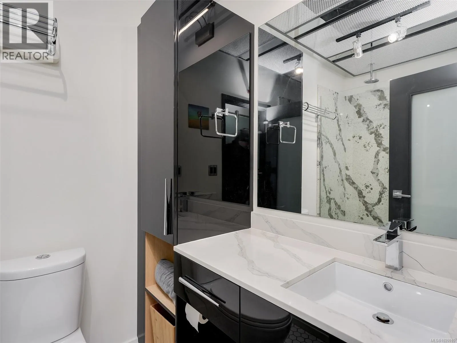 Stylish one-bedroom corner unit with an expansive private terrace! Located in the Jukebox, a quality steel-and-concrete building. This home features an industrial vibe with exposed ductwork and concrete walls. Features include 10 ft. ceilings, hardwood floors, quartz countertops, premium stainless appliances, and in-suite laundry. Enjoy BBQs, and gardening from your spacious terrace. Building amenities include a fully equipped gym and