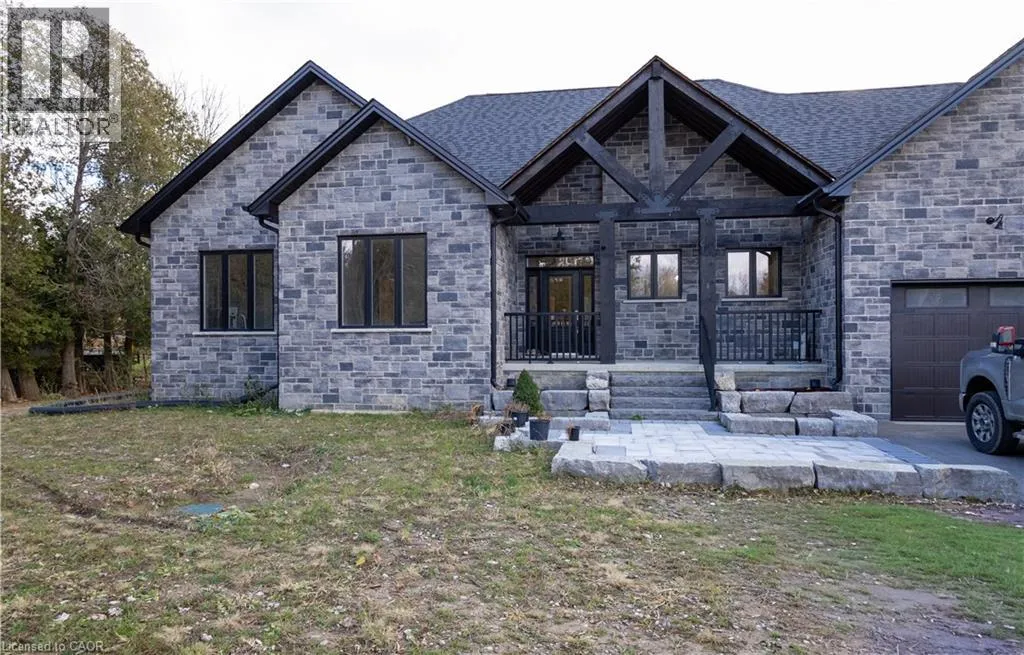 +"PublicRemarks": "Two homes on one property! Stunning new 3-bedroom, 2.5-bath stone bungalow on 1 acre with an additional home and detached garage—perfect for in-laws, generational families. Open-concept living with vaulted ceilings, hardwood floors, wood beams, chef’s kitchen, and large windows. Primary suite with ensuite, walk-in closet, and backyard access. Unfinished 2,000 sq ft basement ready for your personal touch. Peaceful country living just outside Cambridge (id:62650)"
