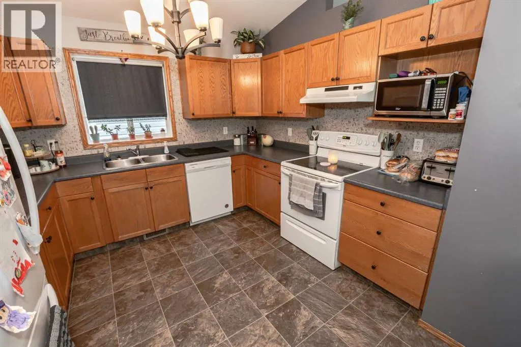 +"PublicRemarks": "Modified bi-level in the family-friendly community of Pinnacle Ridge! Sunny west-facing backyard, and plenty of space inside and out! The main floor features an open layout that feels instantly welcoming. The living room features a cozy fireplace — perfect for relaxing on cool evenings. The kitchen has everything you need, including a large island with breakfast bar, pantry, and stainless steel appliances. The dining area opens onto a covered deck. There are two good-sized bedrooms on the main floor plus a four-piece bathroom. Upstairs, the spacious primary suite offers a private getaway with a four-piece ensuite and a jetted tub. The fully fenced backyard is ready for family fun and entertaining, complete with a deck, fire pit area, and shed. Other Highlights: 24’ x 24’ garage, unfinished basement with tons of potential. If you’ve been looking for a comfortable home in a great neighborhood with room to grow, this one’s worth a look! (id:62650)"