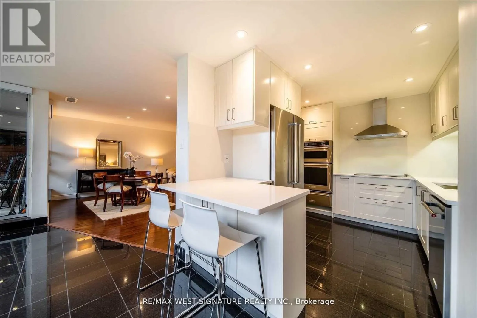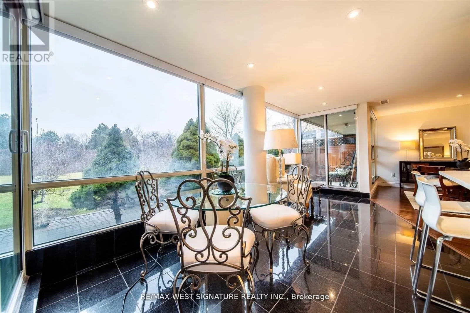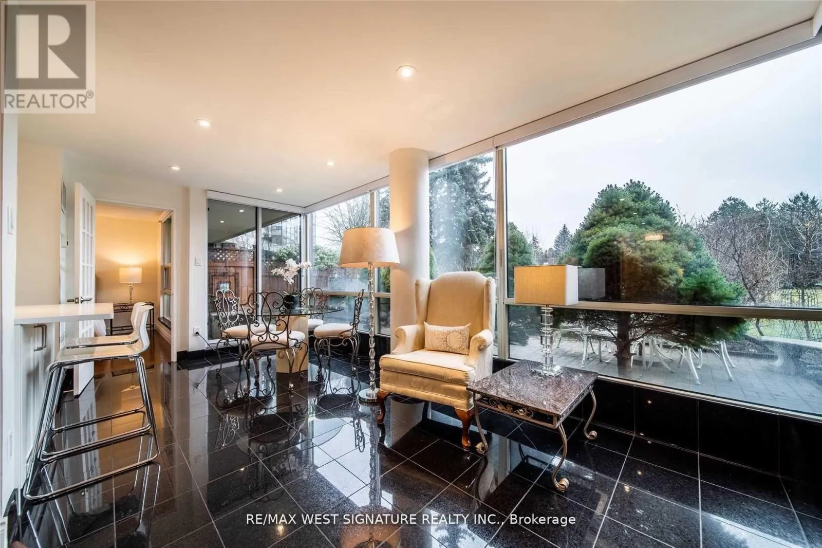 +"PublicRemarks": "Spectacular bright open concept luxurious MAIN FLOOR SUITE completely renovated and featuring 2 walkouts to a private terrace! Stunning kitchen with quartz tops, granite flooring and top of the line stainless steel appliances! Living/Dining rm with hardwood floors, large primary bedroom has 4 pc ensuite & walk-in closet, beautiful solarium and more! Superb Building with 24 hr security, Pool + Full amenities. INCLUDES ALL UTILITIES !!! Must be seen! (id:62650)"