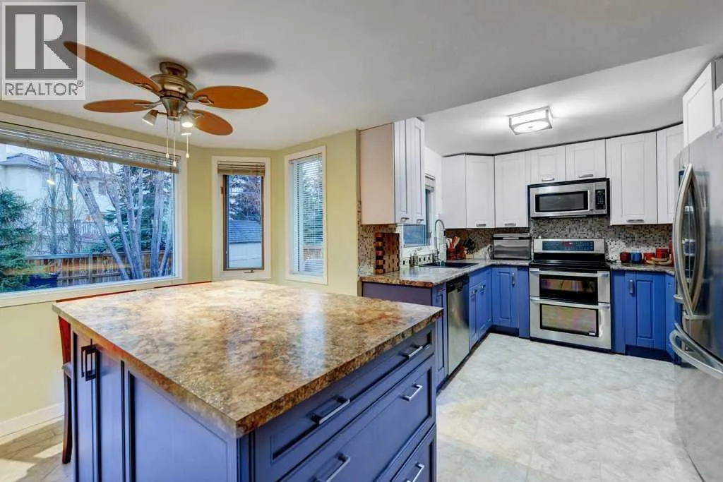 +"PublicRemarks": "A beautifully maintained and fully developed 2-storey home with 3½ baths, perfectly situated on a quiet street in the heart of Hawkwood. This property has seen significant updates over the years, including a newer roof, newer garage door, two newer hot water tanks, a refreshed kitchen, renovated primary en-suite, and full removal of poly-b plumbing.The main floor features gleaming hardwood throughout, with a bright living and dining area leading into the updated kitchen complete with stainless steel appliances, island, and a welcoming eating nook. Adjacent is the cozy family room with a fireplace—an ideal place to unwind. A Fujitsu ductless Halcyon AC unit in the primary bedroom keeps the home cool on warm summer days.Upstairs you’ll find three generous bedrooms with updated Luxury Vinyl Plank flooring, including the spacious primary suite with a recently renovated en-suite. Two additional well-sized bedrooms and a full bath complete the upper level.The fully finished basement offers excellent additional living space, also finished with Luxury Vinyl Plank flooring, including a large recreation room, a fourth bedroom, and a 3-piece bath with in-floor heat—perfect for guests or entertainment.Step outside to discover outstanding outdoor living: a meticulously cared-for fully fenced, private backyard featuring a sunny deck with pergola, a large poured concrete patio, and a 9x9 shed, an ideal setting for summer relaxation and gatherings.A good-sized double attached garage completes the home. Located just steps from schools, parks, playgrounds, and transit, with quick access to Crowfoot Crossing, Costco, Superstore, and major routes including Stoney Trail and Crowchild Trail—this home offers exceptional convenience in a quiet, family-friendly setting. (id:62650)"