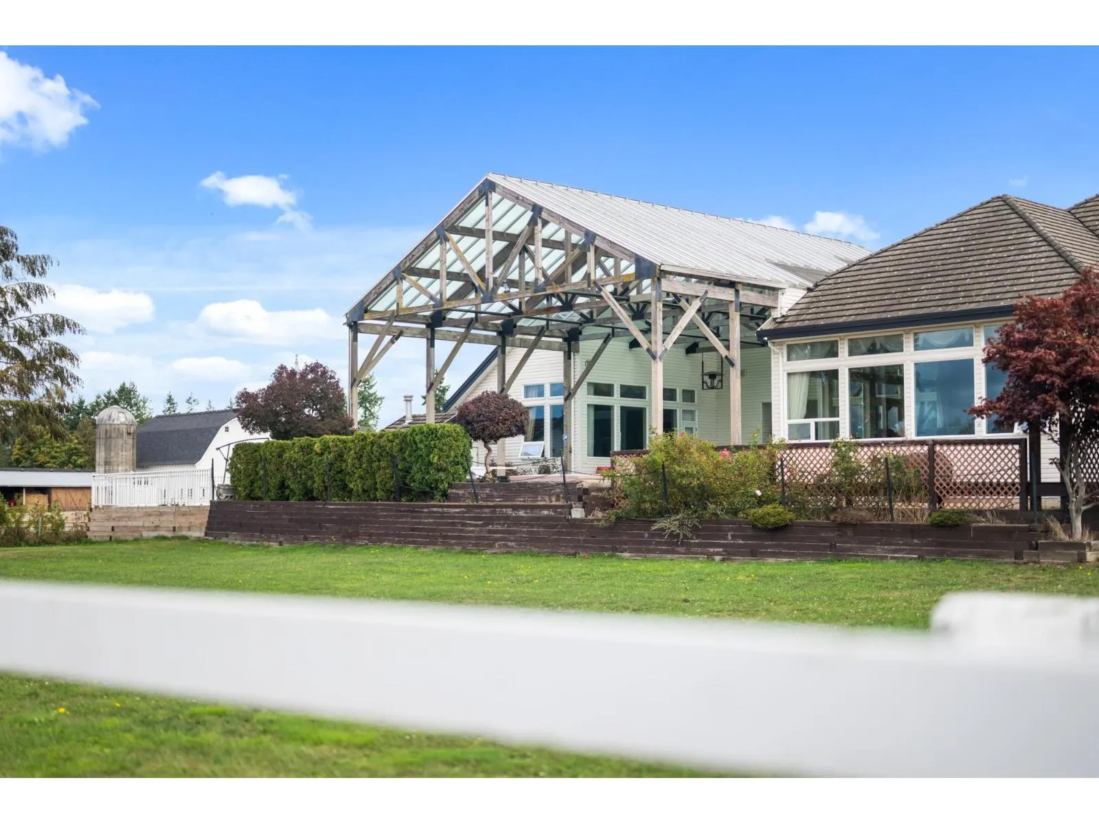 +"PublicRemarks": "Gated 9.77-acre estate in the Otter District! This stunning 10,088 sq ft rancher with a full finished basement offers elegance, comfort & functionality. Main floor features 4 bedrooms, 3 bathrooms, office, dining room & a great room with soaring 12' ceilings & large windows showcasing panoramic field views. The lower level is designed for entertaining with 2 bedrooms, 3 bathrooms, bar, gym & media room. Love to host? Enjoy the 40'x20' pool enclosed by a striking glass dome for year-round use. For horse enthusiasts, the estate includes a riding arena & a 6-stall barn with loft. Triple garage, gated entry, & endless outdoor space complete this rare package, just minutes from Campbell Valley Park. A luxurious country lifestyle awaits! (id:62650)"