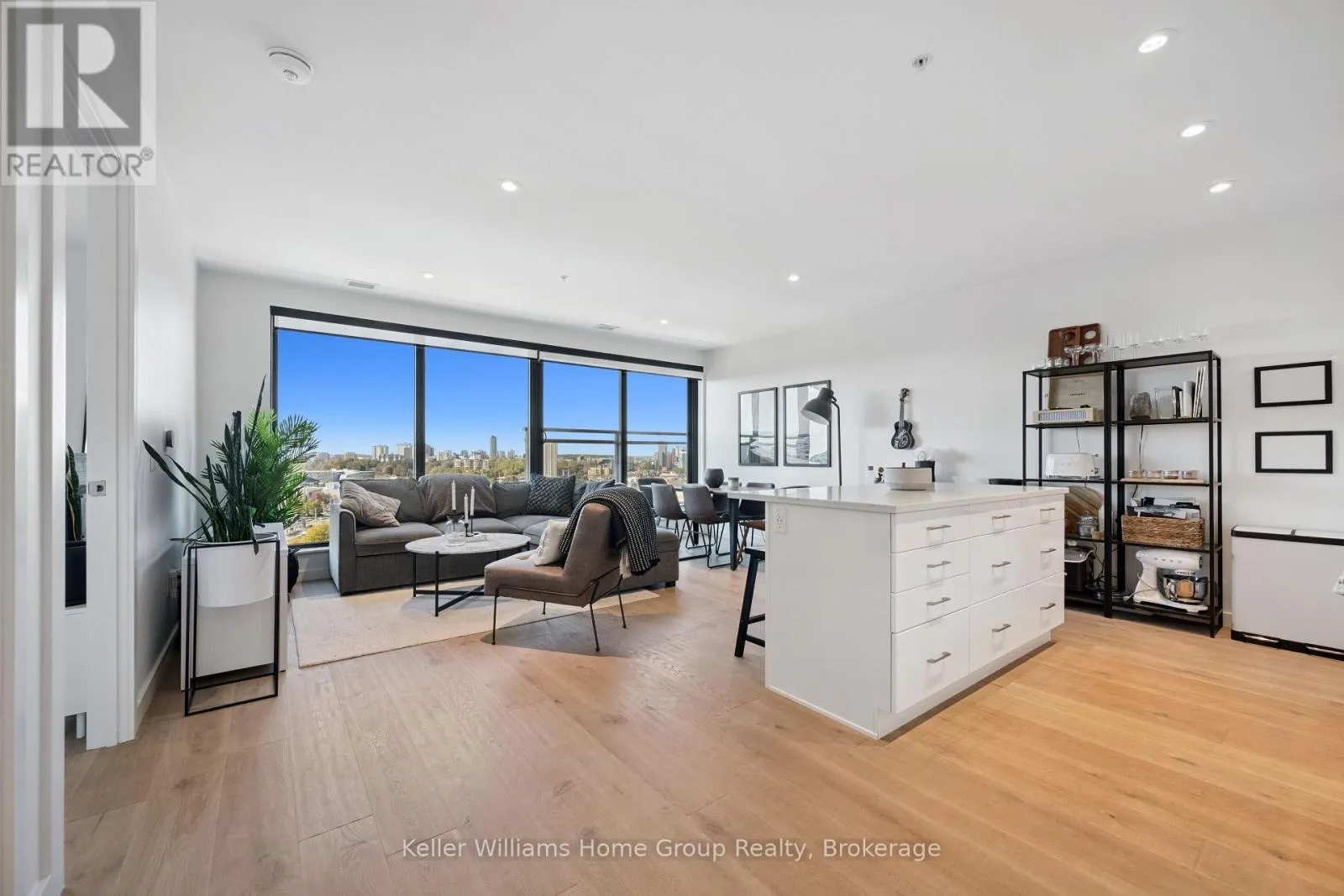 +"PublicRemarks": "Welcome Home to the "Bright Building"! Experience modern living at its finest, ideally locatedin downtown Kitchener/Innovation district, easy access to LRT, Google, KPMG, Grand RiverHospital & Victoria Park. This cutting edge building offers amazing amenities including anautomated parcel delivery system, Outdoor saunas, ev ready parking space, large bike storage &repair station, hygge lounge *featuring a library, cafe, & fireplace seating area* & outdoorkitchen/bar. The 687ft2 unit + huge 517ft2 terrace features a smart home display, allowingresidents to control lighting, temperature, and security effortlessly. Beautiful laminateflooring & potlights throughout, contemporary two toned kitchen with quartz counters, tilebacksplash and built in appliances. Primary bedroom with built-in closet & organizers, 3pcensuite. Huge living space overlooks double sliders leading to the largest terrace in thebuilding! Enjoy indoor & outdoor living, perfect for entertaining & relaxation. (id:62650)"