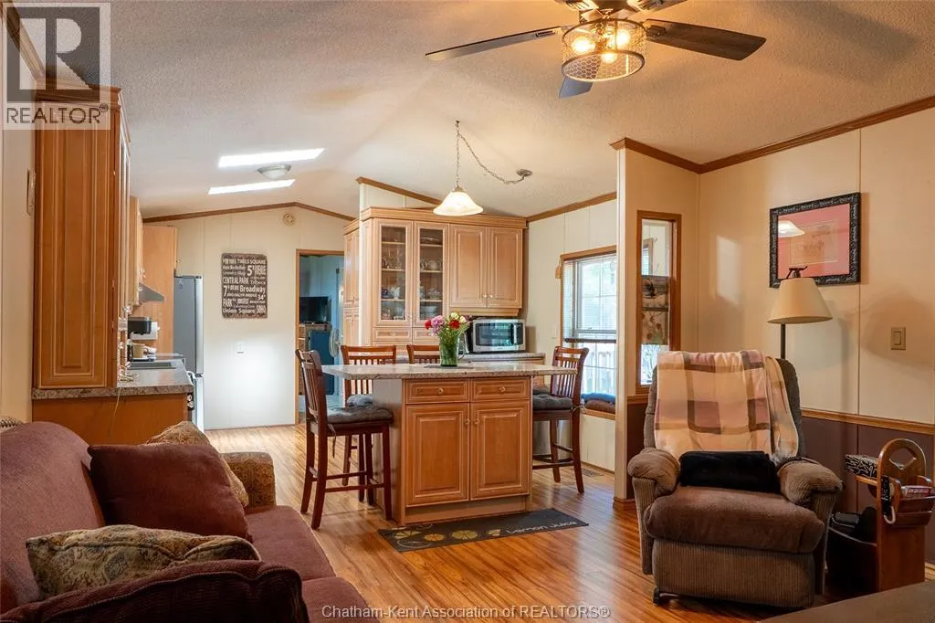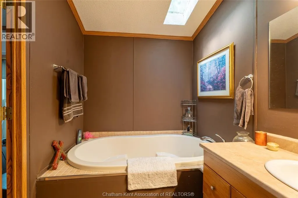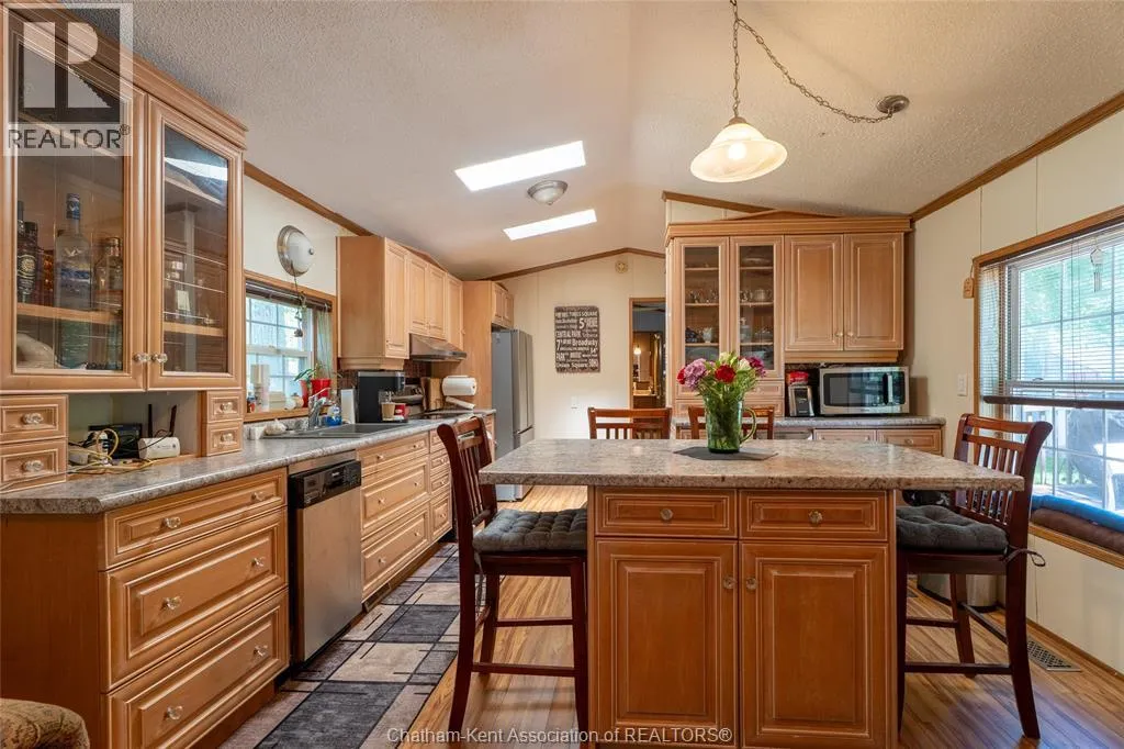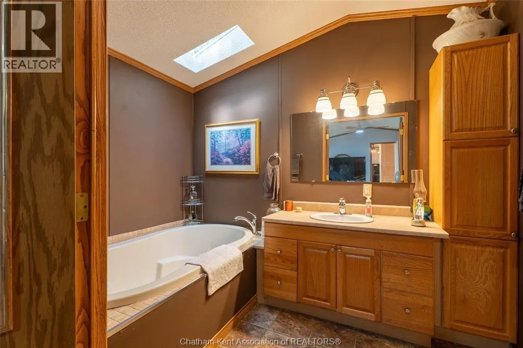 Welcome to Briarwood Estates, where this 1990 modern mobile home sits on an extra-large lot surrounded by nature. Featuring vaulted ceilings for a bright, open feel, this home offers two bedrooms and two full bathrooms, including a five-piece ensuite with a soaker tub. The spacious kitchen and living area flow nicely into the 20’ x 12’ heated and cooled sunroom,