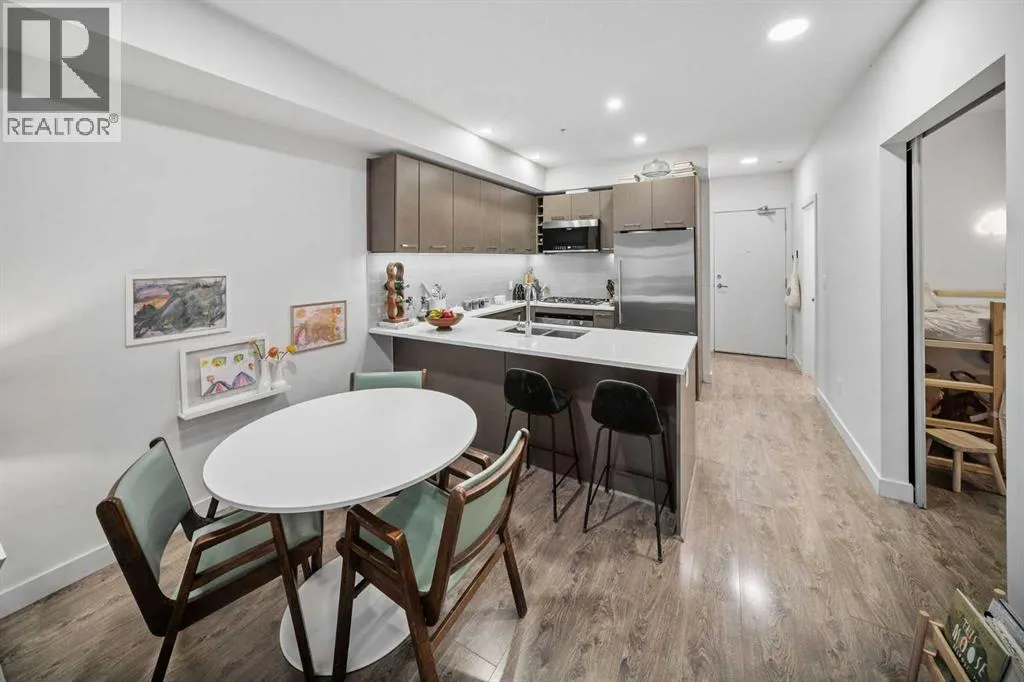 +"PublicRemarks": "Located in one of the city’s most walkable communities and just steps from Lindsay Park, this south-facing two-bedroom home is ideal for anyone looking to enjoy the unmatched amenities of Mission. With nine-foot ceilings and an award-winning layout, the living space flows seamlessly to a large, covered balcony. The U-shaped kitchen features quartz countertops, under-cabinet lighting, Fisher & Paykel stainless steel refrigerator, double-drawer dishwasher, built-in convection oven, Frigidaire microwave hood fan, garburator, and a four-burner Bosch gas cooktop. Near the front entry, you’ll find the Samsung washer/dryer and oversized entry closet offering ample room for seasonal storage. The four-piece bathroom includes quartz counters and a deep soaker tub with full tile surround. The second bedroom/office has a sleek sliding door and is positioned away from the primary bedroom and near the main bath. The primary accommodates a king-sized bed and includes custom blackout curtains and a generous walk-through closet. The three-piece ensuite features a full-height wall-mirror, quartz counters, exceptional vanity storage, and a linen closet. The 97 sq. ft. south-facing balcony with gas line hookup looks out at a tree line and over the secured community garden. This home includes *two titled, oversized, side-by-side parking stalls* located directly beside the parkade entrance and enclosed by concrete on both sides, with an assigned storage locker nearby. The building offers a car wash bay, secure bike storage, and plenty of underground visitor parking. Mission is tough to beat. If you value the ability to walk to a grocery store, boutique shops, arts & entertainment, the Elbow River pathways, and some of the best restaurants in the city - this could be the place for you. (id:62650)"
