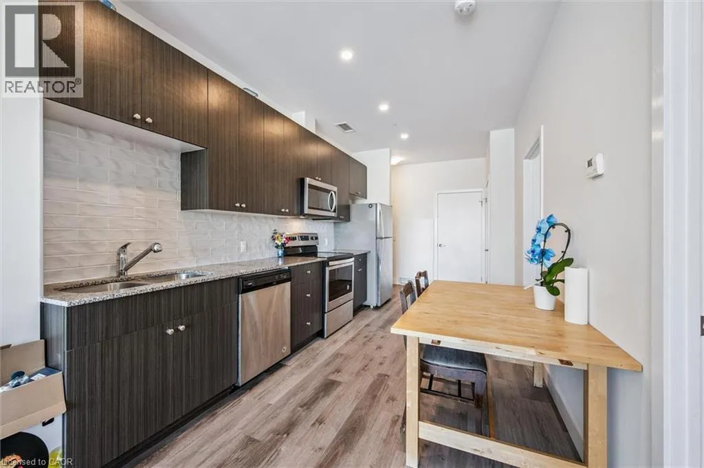 +"PublicRemarks": "FOR LEASE IN THE VIBRANT NEW VIVA COMMUNITY. Welcome to Viva, the newest addition to Mill Street offering a bright and modern lifestyle in the heart of downtown Kitchener. This stylish Musa end-unit features an open-concept layout with a kitchen that includes a breakfast bar, quartz countertops, stainless steel appliances, and luxury vinyl plank and ceramic flooring throughout. Offering 542 sq. ft. of comfortable living space, this unit includes 1 bedroom with a large window, 1 full bathroom, and a private balcony. Enjoy the perfect blend of convenience and nature with the Iron Horse Trail, Victoria Park, the iON LRT, local shops, cafés, and restaurants all just steps away. Thrive in a vibrant, walkable neighbourhood while enjoying the peace of a professionally landscaped, residential community. Heat, hydro, water, and hot water heater are to be paid by the tenant(s). Good credit is required, and a full application must be submitted. AVAILABLE Immediately. Photos are virtually staged. (id:62650)"