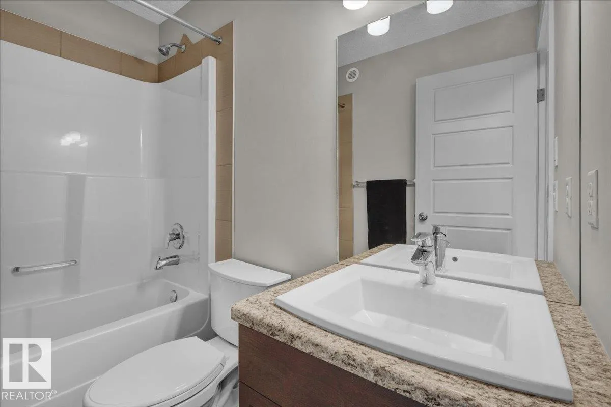 +"PublicRemarks": "Discover refined living in this bright and spacious top-floor 970 sq ft corner unit with 2 bedrooms and 2 full bathrooms. Multiple windows fill the open-concept living and dining area with natural light, creating a warm and welcoming atmosphere. The kitchen stands out with stylish pendant lighting, premium stainless steel appliances, and sleek quartz countertops. Retreat to a comfortable primary bedroom, complete with a walk-through closet and a private four-piece ensuite. An in-suite laundry room adds convenience while offering extra storage. Step outside to relax or entertain on the generous covered balcony—perfect for soaking up the summer sun. Titled heated underground parking ensures year-round comfort and security. Ideally situated steps from dining, shopping, Edmonton Public Library, walking trails, and other amenities, this residence seamlessly blends modern convenience with everyday practicality—an exceptional opportunity to call home. (id:62650)"