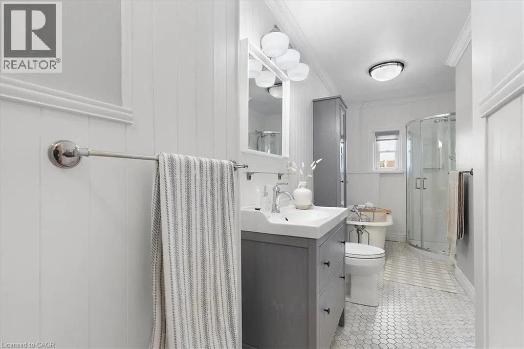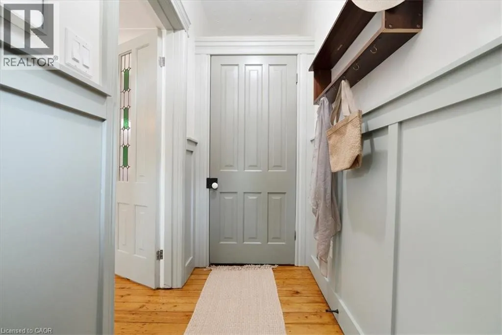 +"PublicRemarks": "From the moment you step through the front door of 40 Emerald Street North, you’re greeted by timeless elegance and modern comfort in perfect harmony. The spacious foyer welcomes you with a full closet, solid wood Victorian doors adorned with vintage hardware, and recently refinished original pine floors that flow throughout the home. High ceilings crowned with ornate medallions, lofty baseboards, and exposed brick create a warm, historic backdrop. The kitchen is a showpiece. Bright white cabinetry, stainless steel appliances, polished wood island, farmer’s sink, herringbone backsplash, wainscoting, and a striking exposed brick wall blend beautifully with the home’s century-old soul. Spacious principal rooms and tall windows fill the main level with light. Convenient powder room finishes the main floor. Wood stairs lead you up to three bedrooms, each with original doors, trim, hardware, and floors, along with a modern, sparkling bath. Everywhere you look, the best of old-world craftsmanship and thoughtful updates unite in style. The fully finished basement offers incredible flexibility. A private in-law suite, teenage retreat, or guest space featuring a living area that can double as a bedroom, a sleek 3-piece bath, kitchenette, and direct laundry access. Step outside to a fully fenced backyard, perfect for relaxing or entertaining, and a rare detached garage for parking or storage. Updates incl. all wiring and plumbing (2019), 50 year shingles on main roof (2020), all new windows and limestone sills (2019), furnace (2019), water heater (2020). All of this in a walkable downtown location, just steps to shops, restaurants, parks, and transit. 40 Emerald Street North delivers heritage charm, modern updates, and unbeatable convenience. It’s a real gem in the heart of the city. (id:62650)"