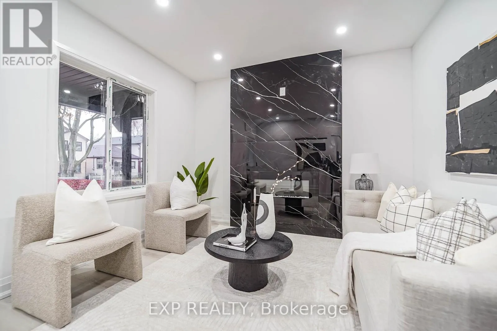 +"PublicRemarks": "Welcome to this stunning reimagined luxury 2.5-storey residence in the heart of The Beaches. Offering approx. 1,880 sq. ft. of refined living space, this home features 3 spacious bedrooms plus a versatile loft that can serve as a 4th bedroom, 4 beautifully designed bathrooms, and a fully finished walkout basement with its own kitchen. Renovated from top to bottom, this home combines timeless design with modern convenience, showcasing engineered European wide-plank hardwood, refined millwork, sleek matte finishes, and a striking feature wall with an elongated fireplace. The custom chefs kitchen showcases Italian Sahara slab counters with an oversized waterfall island, Fulgor Milano & KitchenAid appliances, and designer lighting ideal for entertaining. Dramatic 10-ft sliding doors open to a landscaped backyard oasis with custom deck, interlocking, and stone patio. A private driveway with 2 parking spaces adds rare convenience. Upstairs, bright bedrooms include custom closets, spa-inspired bathrooms with Italian tile, and a primary suite with a glass shower and brushed-gold fixtures, while a second-floor laundry enhances daily living. With all-new mechanicals including a new furnace, 200-amp service, plumbing, waterproofing, and smart-home features, this turnkey home provides peace of mind. Steps to Queen St., Kew Gardens, and top schools including Williamson Rd. (French Immersion), and less than a 10-minute walk to sandy beaches and the boardwalks that define this lifestyle. (id:62650)"