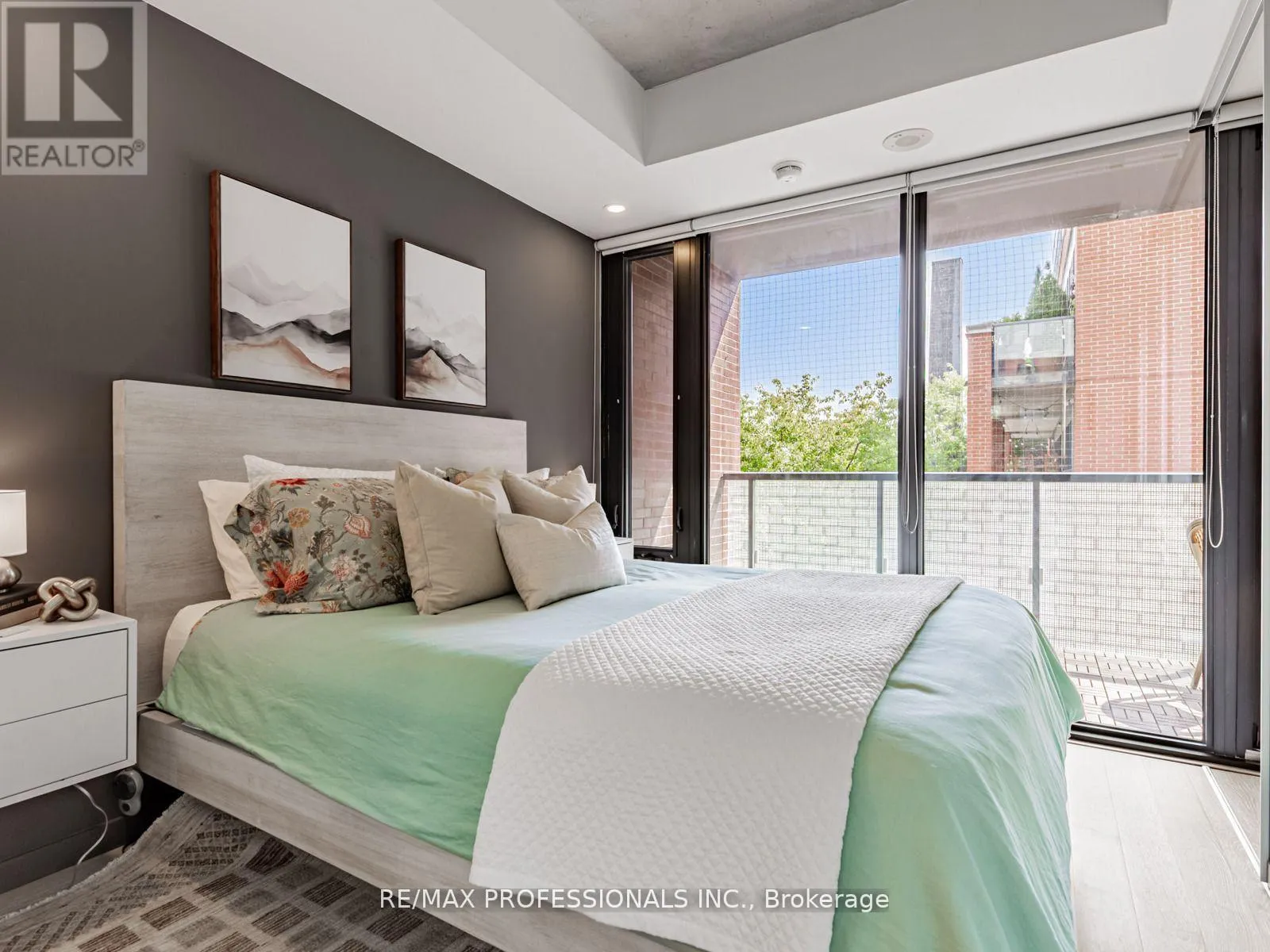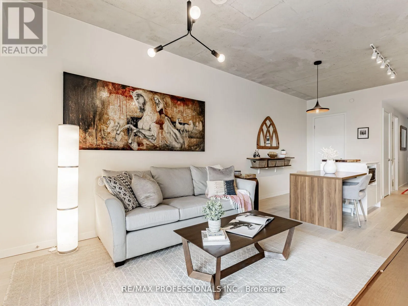 +"PublicRemarks": "Live in one of Toronto's most sought-after neighbourhoods, in a boutique building designed by renowned neo-modern architect Peter Clewes. This intimate and stylish residence offers the perfect balance of design and function. This thoughtfully planned 1+den suite with two full baths features a versatile den that can easily serve as a second bedroom or home office. Soaring nine-foot exposed concrete ceilings, floor-to-ceiling black-framed windows that flood the unit in sunlight, and bleached oak floors fill the space with natural light and give it a modern edge. The sleek kitchen is equipped with built-in appliances, quartz counters, a stainless steel backsplash, oversized sink, and crisp white cabinetry. A custom island with quartz counters extends into a walnut dining table, creating a seamless space for both cooking and entertaining. The primary bedroom offers pot lighting, floor-to-ceiling windows, double closets, and a spa-like three-piece ensuite with a frameless glass walk-in shower. A private covered balcony, integrated front closet, ensuite storage, and in-suite laundry complete the home, along with one underground parking space. Residents enjoy exceptional building amenities including a gym, party room, concierge, BBQ area, bike storage, and visitor parking. Situated in the heart of Roncesvalles, one of Toronto's most vibrant communities, this home is surrounded by cafes, restaurants, markets, shops, and parks including an off-leash dog park! With quick TTC access by streetcar or subway, downtown is only minutes away. Stylish, functional, and ideally located, this condo offers the best of both home and neighbourhood. (id:62650)"