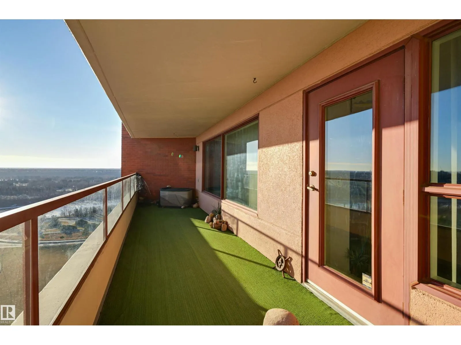+"PublicRemarks": "PANORAMIC RIVER VALLEY & CITY VIEWS from this 1631 sq.ft. 2 bedroom 2 bathroom condo in THE GLENORA conveniently located on Jasper Ave. with the bus at your door, close to restaurants, unique shops, Art Galleries, coffee shops & quick access to the Brewery & Ice Districts & the river valley trails. South, north & east exposures with a spacious south facing balcony with access from the living & dining room & the spacious living area has floor to ceiling windows. White cabinetry in the kitchen with Corian countertops, a built-in pantry & built-in desk. 3 piece bathroom with a walk-in shower. The primary suite has a walk-in closet, ensuite bathroom with a jacuzzi tub & walk-in shower, lots of built-in cabinets & access to the north facing balcony. Large storage room w a brand new stacking washer & dryer. A/C & 2 U/G parking with storage. Social & fitness rooms, private patio area, guest suite, U/G visitor parking, 45+. Fees include heat, water, power & classic cable. Only 3 units on the floor. (id:62650)"
