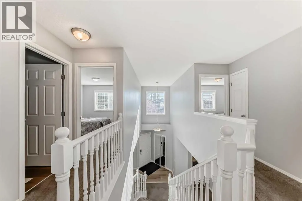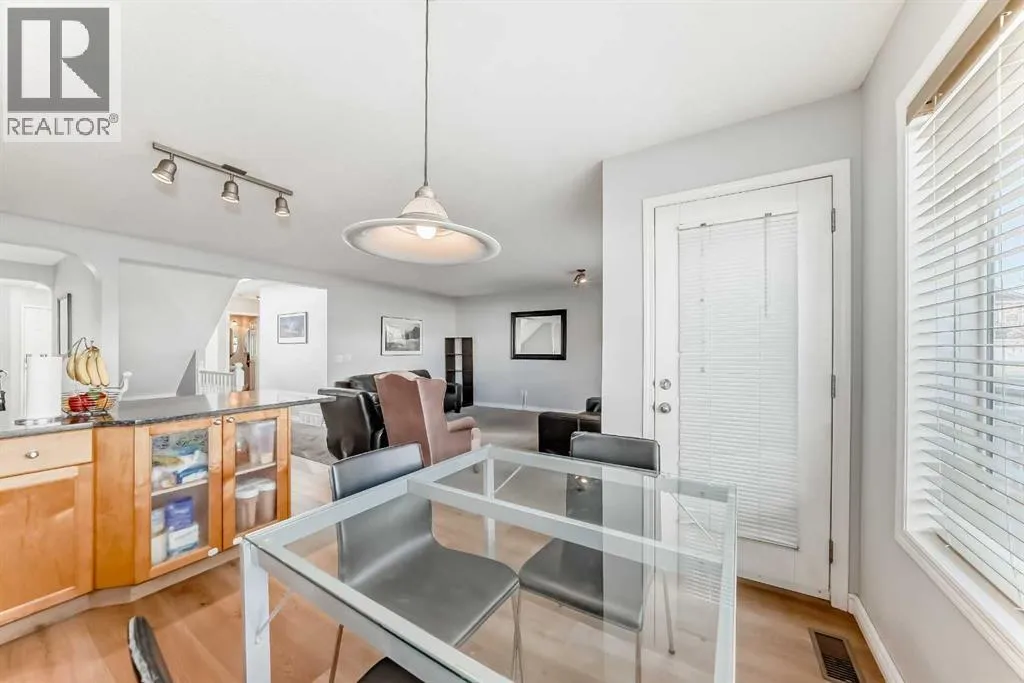 +"PublicRemarks": "Backing onto a serene green belt, this cozy and well-kept 2-storey home is located in the highly sought-after community of Hanson Ranch. Offering a total of over 2,200 sq. ft. of living space, the main level features an open-concept design starting with a bright den/office, a spacious formal dining area, and a vaulted gourmet kitchen complete with granite countertops and maple cabinetry. The impressive 17-ft open-to-below living room is highlighted by a beautiful fireplace, while maple hardwood floors flow throughout the main floor.The upper level includes a generous primary bedroom with a 4-piece ensuite, along with two additional well-sized bedrooms. The fully finished basement adds even more value with a large family room featuring an elegant wet bar, a fourth bedroom, and a third full bathroom.Additional recent upgrades include new window coverings, new stove and fridge, and newly polished hardwood flooring throughout. The home also offers a double attached garage.Ideally located with easy access to Vivo Centre, Superstore, shopping, schools, and public transit.Call today for your private viewing — shows 10/10! (id:62650)"
