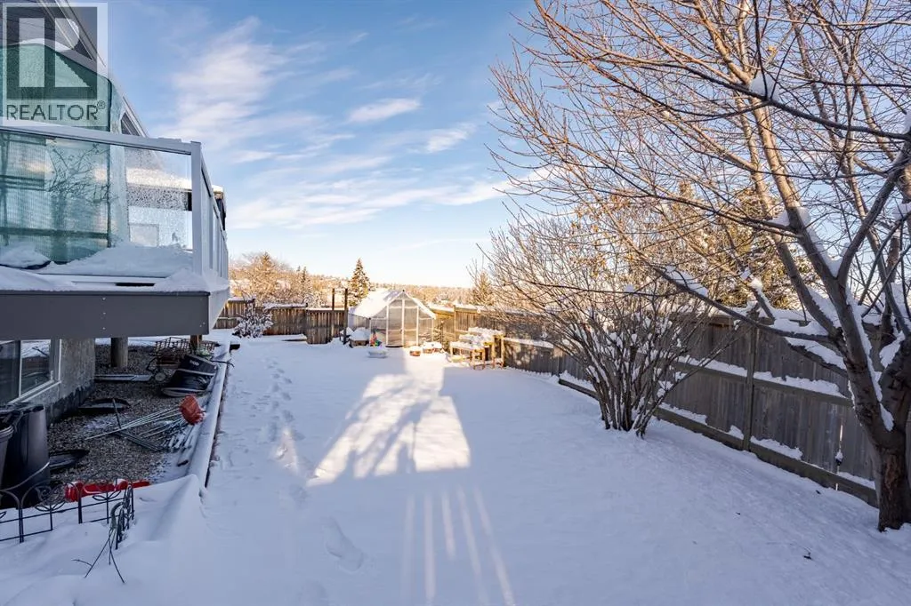 +"PublicRemarks": "Discover this spacious and well-maintained 1,578 sq. ft. bungalow, offering exceptional comfort and versatility; ideal for a growing family. Located on a quiet, desirable crescent this fully developed home features 4 bedrooms and 3 bathrooms. You are immediately welcomed by gleaming wood floors and an abundance of vinyl windows that fill the space with natural light. The open-concept kitchen features stainless steel appliances and provides ample counter and cupboard space. The family room features a cozy gas fireplace and leads to your incredible outdoor living space. The massive updated composite deck with sleek glass panel railing offers expansive views and is perfect for entertaining while maintaining a private oasis. Back inside the primary bedroom features plenty of closet space and private 2-piece ensuite. Two more generously sized bedrooms, an updated 4- piece bathroom and convenient main-floor laundry room with built-in cabinetry complete this level. The fully developed basement expands the living space with a large media room, gym area, and recreational zone. An additional bedroom, a 3-piece bathroom (plus sauna) make this level ideal for guests or extended family. A flex space—currently used as an office—plus ample storage with plenty of built-ins enhances the home’s functionality. Outside, the massive backyard offers stunning views and endless room to play, garden, or entertain. The attached double garage is drywalled, insulated, and heated—adding valuable convenience year-round. Located only minutes from Nose Hill Park, the Winter Club, shopping, schools and all amenities. This exceptional bungalow combines comfort, updates, and room to grow—truly a place to call home. (id:62650)"