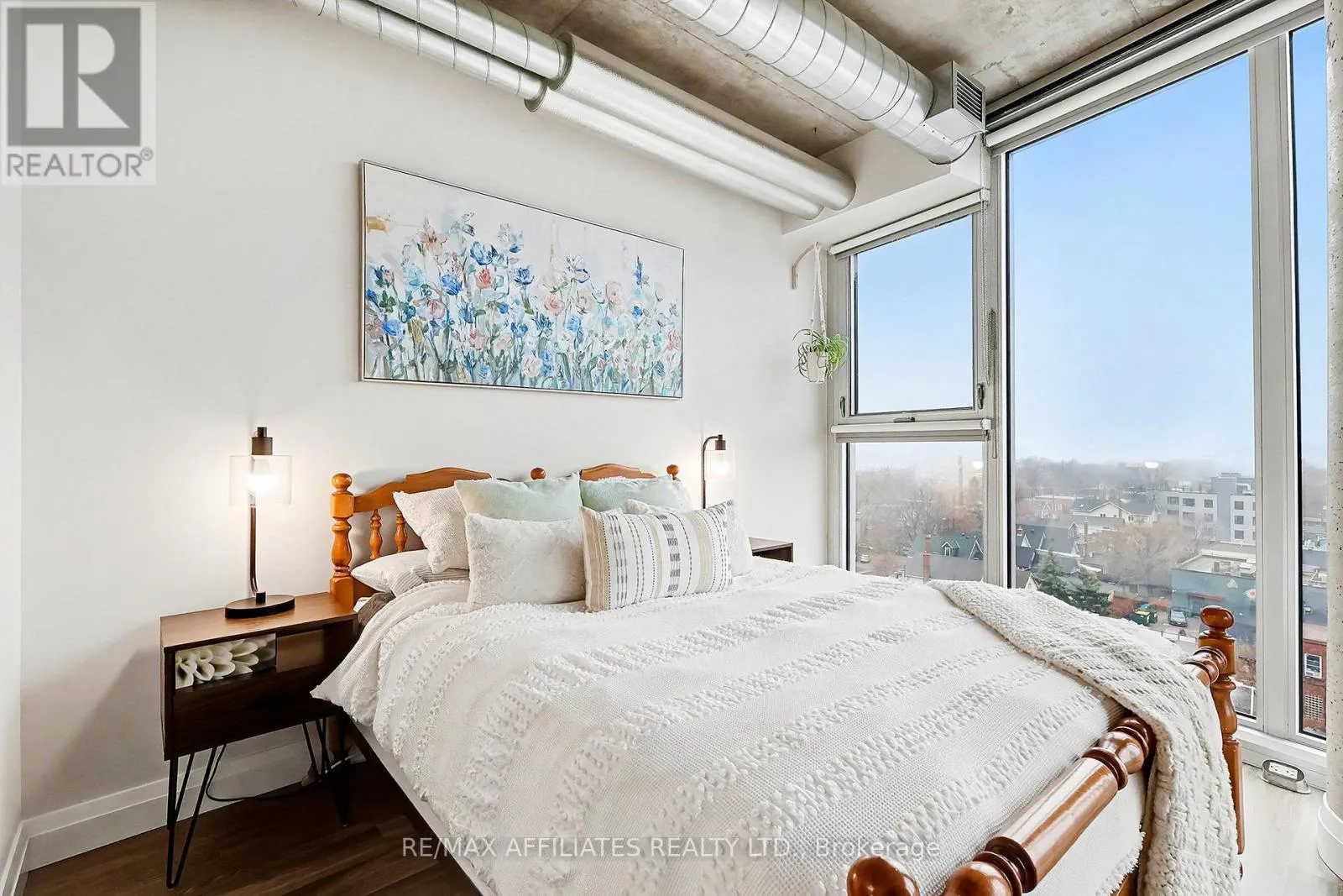+"PublicRemarks": "Chic 2 bed, 2 bath condo in the heart of downtown Ottawa! Many upgrades throughout this 7th floor unit. Enjoy entertaining friends and family in the open concept kitchen/living/dining space with a fabulous wrap around, floor-to-ceiling city view! 9' exposed concrete ceilings. Kitchen includes stainless steel appliances, modern cabinets, large island with breakfast bar, and customizable Philips Hue lighting. The primary bedroom has a west facing view with black out blinds, 2 large closets and 4 piece ensuite. The second bedroom is located off the front entry with a north facing view and ample closet space. Second bathroom is a 3 piece with standing shower. In-suite laundry. Custom blinds and closets throughout! Nest thermostats. This building includes access to party room, gym, terrace with BBQs, weekend night security and weekday concierge. Walking distance to great restaurants, shopping and transit. Enjoy the view of the Canada Day and Lac Leamy fireworks displays from this unit! Downtown living at its finest! (id:62650)"