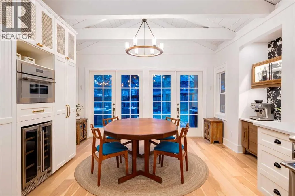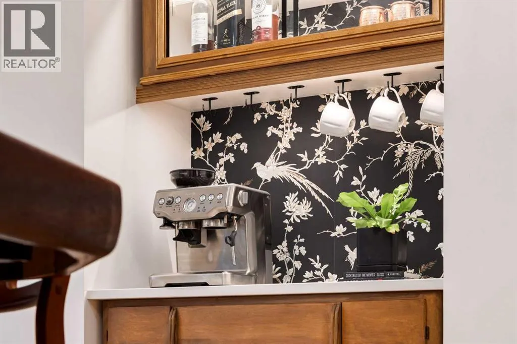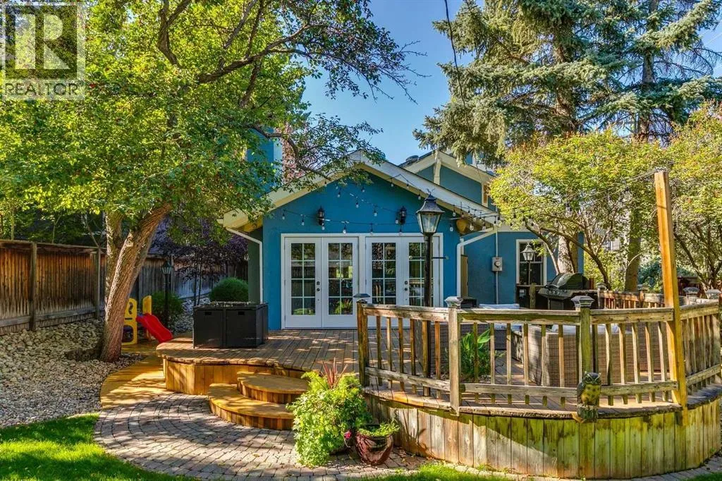 +"PublicRemarks": "OPEN HOUSE SATURDAY - 11AM to 3PM. Set in Upper Mount Royal, this beautifully renewed Craftsman home offers an exceptional blend of architectural charm, bespoke finishes, and modern, high-performance upgrades. Surrounded by mature trees and framed by artful landscaping, the property rests on a quiet, private street just a short walk from 17th Avenue, yet feels worlds away in its tranquility. A covered front porch welcomes you into a residence defined by warmth and craftsmanship. The front gardens are meticulously designed with rock wall detailing, perennial plantings, and carefully placed rock borders with new sod installed in 2023. Established species anchor the outdoor spaces with year-round texture and colour, all maintained by a five-zone sprinkler system. At the rear of the home, double French doors open onto an expansive wraparound deck - a series of outdoor living and dining spaces that celebrate the home’s connection to nature. Inside, the residence unfolds with a curated blend of original detail and modern sophistication. Engineered hardwood floors span the main and upper levels, while custom wallpaper, stained glass sconces, coffered ceilings, vaulted ceilings—including one with a skylight—and built-in shelving create an atmosphere of timeless charm. The original brick chimney remains a focal point, preserving the home’s architectural story. The kitchen is both beautifully crafted and superbly equipped. Custom wood and beadboard cabinetry, Caesarstone countertops, and a brick backsplash are paired with a suite of premium appliances and a custom hood venting system. Details such as the copper sink, overhead potholder, and a dedicated coffee and scotch bar elevate both daily living and entertaining. The home’s bathrooms carry the same blend of history and refinement. The main bath features a classic clawfoot tub, while the primary ensuite is a true retreat, complete with a custom antique double vanity topped with hardwood counters, an oversized glass shower with gold-finished rain and hand-held fixtures, heated floors, and the original butler’s door connecting directly to the walk-in closet. The lower level offers extensive storage and a hidden room that lends itself beautifully to your own private “speakeasy”, music room, cigar and scotch lounge, or personal retreat. A new asphalt roof was installed in 2023, and a 21-panel, 8.91-kilowatt solar array added in 2025. Nearly all windows and the rear doors have been upgraded to Lux units, complemented by JELD-WEN windows in select spaces. The electrical service was upgraded to 200 amps in 2023, the furnace control board was replaced in 2024, and on-demand hot water is installed. The heated, oversized double attached garage offers exceptional utility with direct access to the home, easily accommodating two vehicles with extra space for other “toys”. This Upper Mount Royal residence embodies luxury in its truest form—not through excess, but through craftsmanship, character, and an enduring connection to place. (id:62650)"