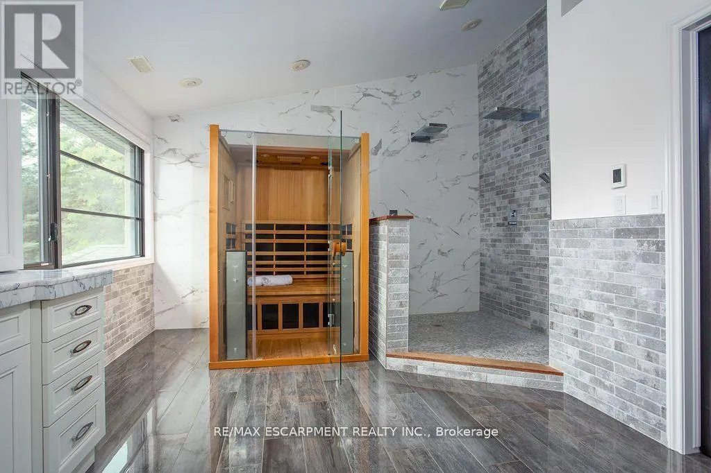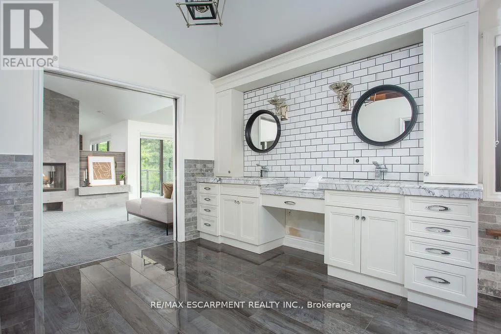 +"PublicRemarks": "Welcome to 27 Blackberry Place a truly exceptional luxury estate nestled at the end of a prestigious cul-desac in the heart of Carlisle. Set on a sprawling and completely private 2.12-acre lot, this distinguished residence is enveloped by professionally landscaped grounds, featuring curated gardens and a winding driveway. This home offers over 7,791 sq ft, timeless design and modern refinement. The soaring two storey foyer welcomes you, flanked by a formal dining room perfect for hosting, richly appointed wood panelled library with gas fireplace. Light filled updated chefs kitchen with custom cabinetry, soft-close drawers, wood island, marble countertops, high-end appliances, and a generous breakfast room. A soaring great room with vaulted ceilings flows into an oversized sunroom offering panoramic views of the private backyard. Corner office on the main level provides a peaceful work-from-home retreat. The upper level offers a secondary library or office leading into the luxurious primary suite with a spa-inspired ensuite featuring a soaker tub, rain shower, and an expansive dressing room. Three additional spacious bedrooms and 5-piece bathroom complete the second level. The fully finished lower level is an entertainers haven and ideal for multigenerational living or nanny, featuring a private entrance, large recreation and games rooms with built-ins and a gas fireplace, a wet bar with ambient lighting and beverage fridge, a guest bedroom, spa-style bathroom with heated floors, and three oversized storage rooms. Step into the backyard and experience resort-style living. Saltwater gunite pool with cascading rock waterfall, hot tub, expansive deck with pergola, raised vegetable gardens and charming gazebo surrounded by mature trees and lush privacy and acreage. Additional features include an oversized 3 car garage with EV charging capabilities, new furnace (2024), new AC (2024), roof (2019), most appliances (2024). LUXURY CERTIFIED. (id:62650)"